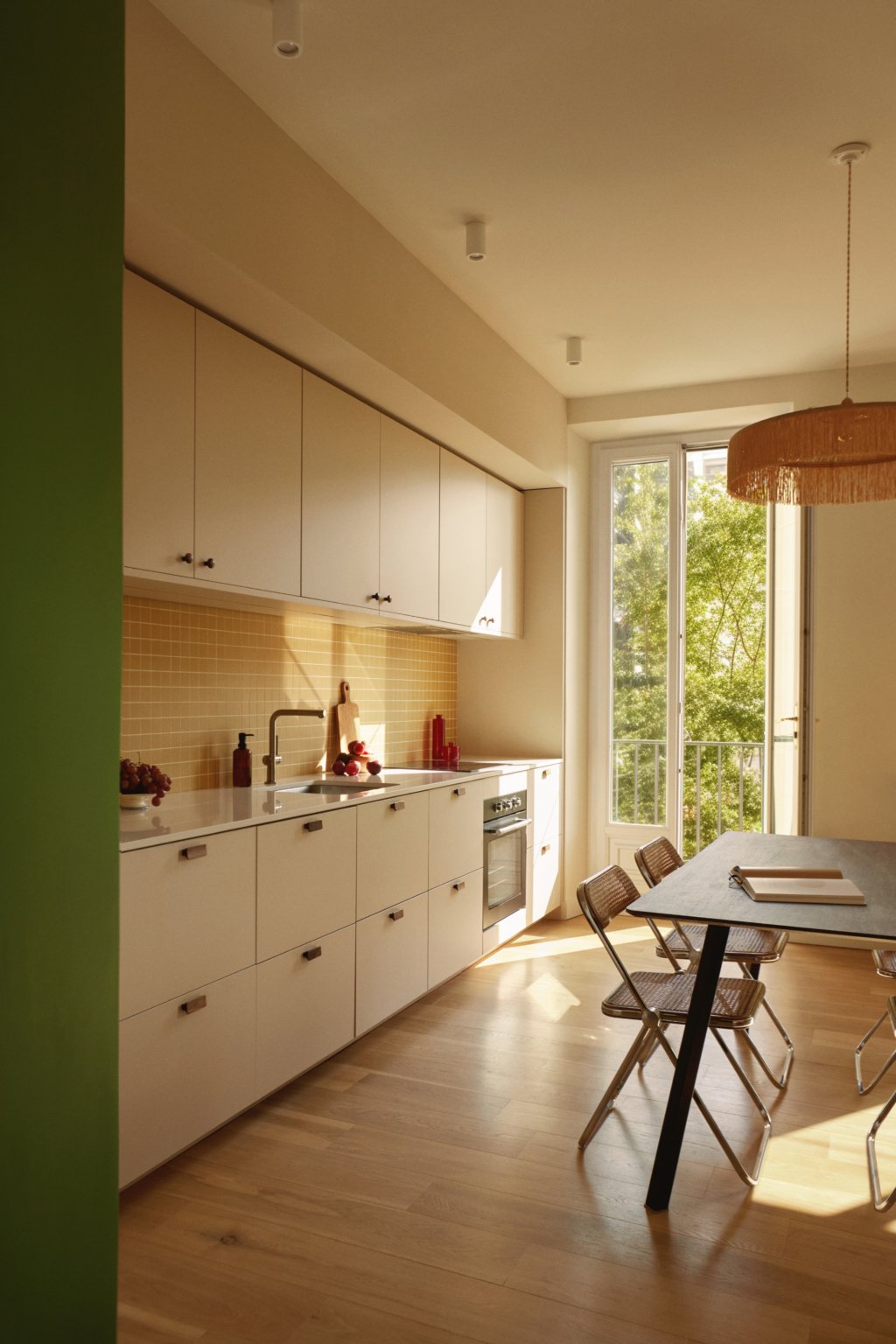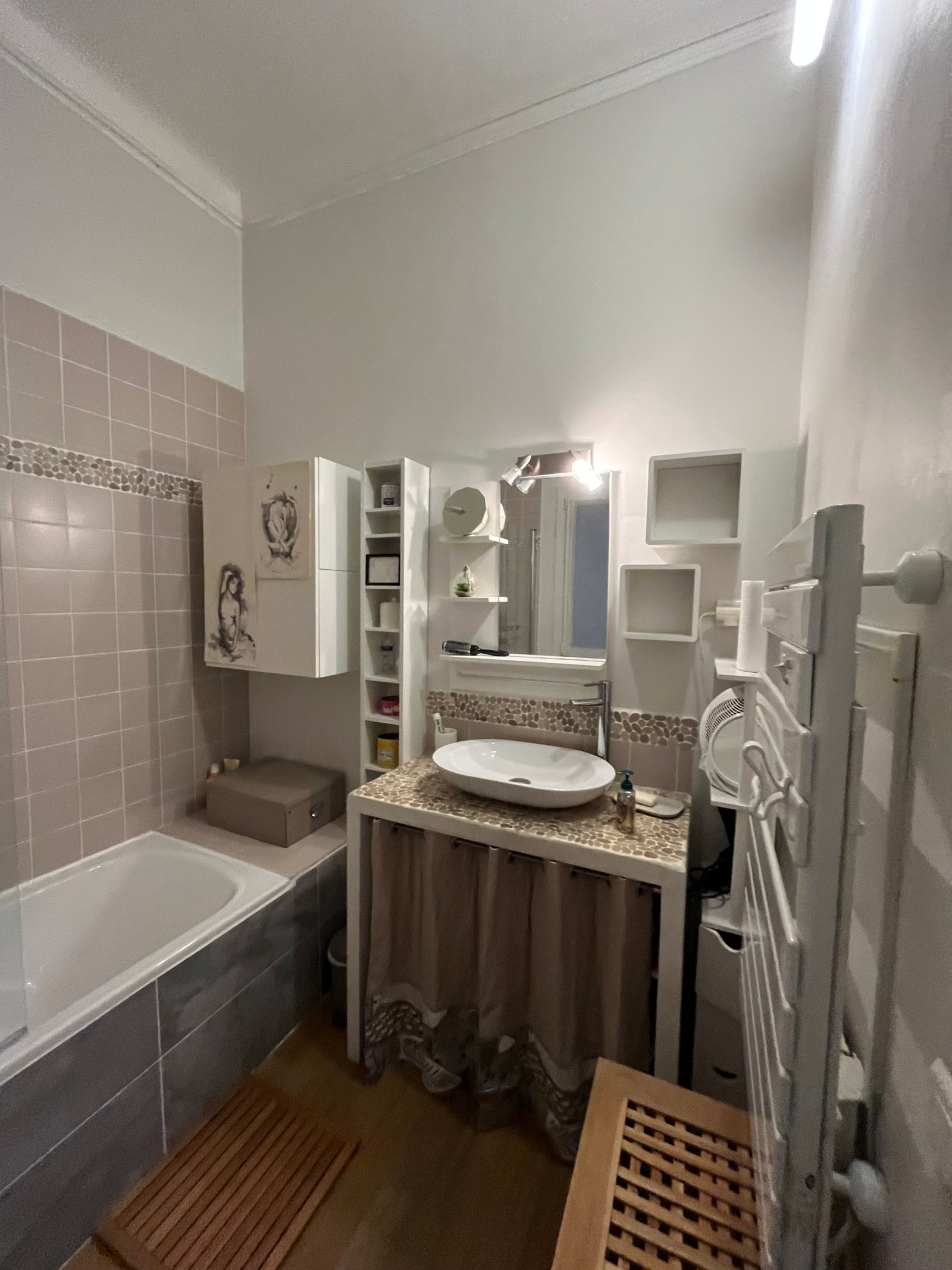L’intervention a visé à remettre l’appartement au goût du jour, en le façonnant à l’image de son propriétaire. La cuisine et la salle de bain dialoguent désormais grâce à un travail délicat sur les matières et les couleurs, offrant une harmonie subtile aux espaces. Les sols, les murs et les détails ont été rénovés pour redonner cohérence et douceur à l’ensemble, tout en respectant un budget très maîtrisé.