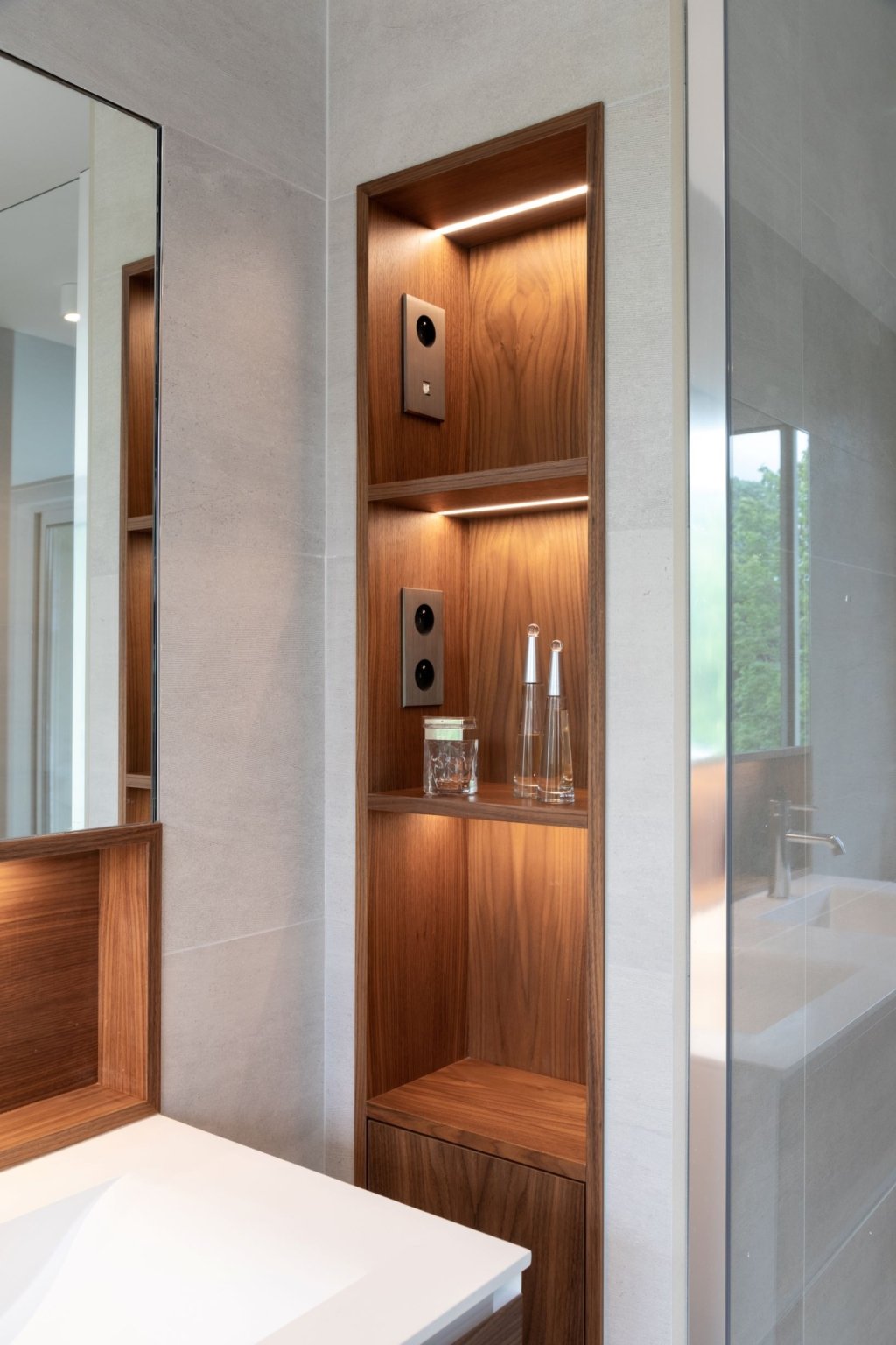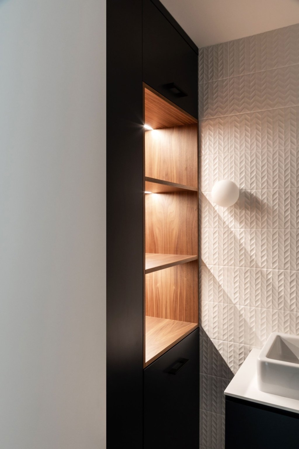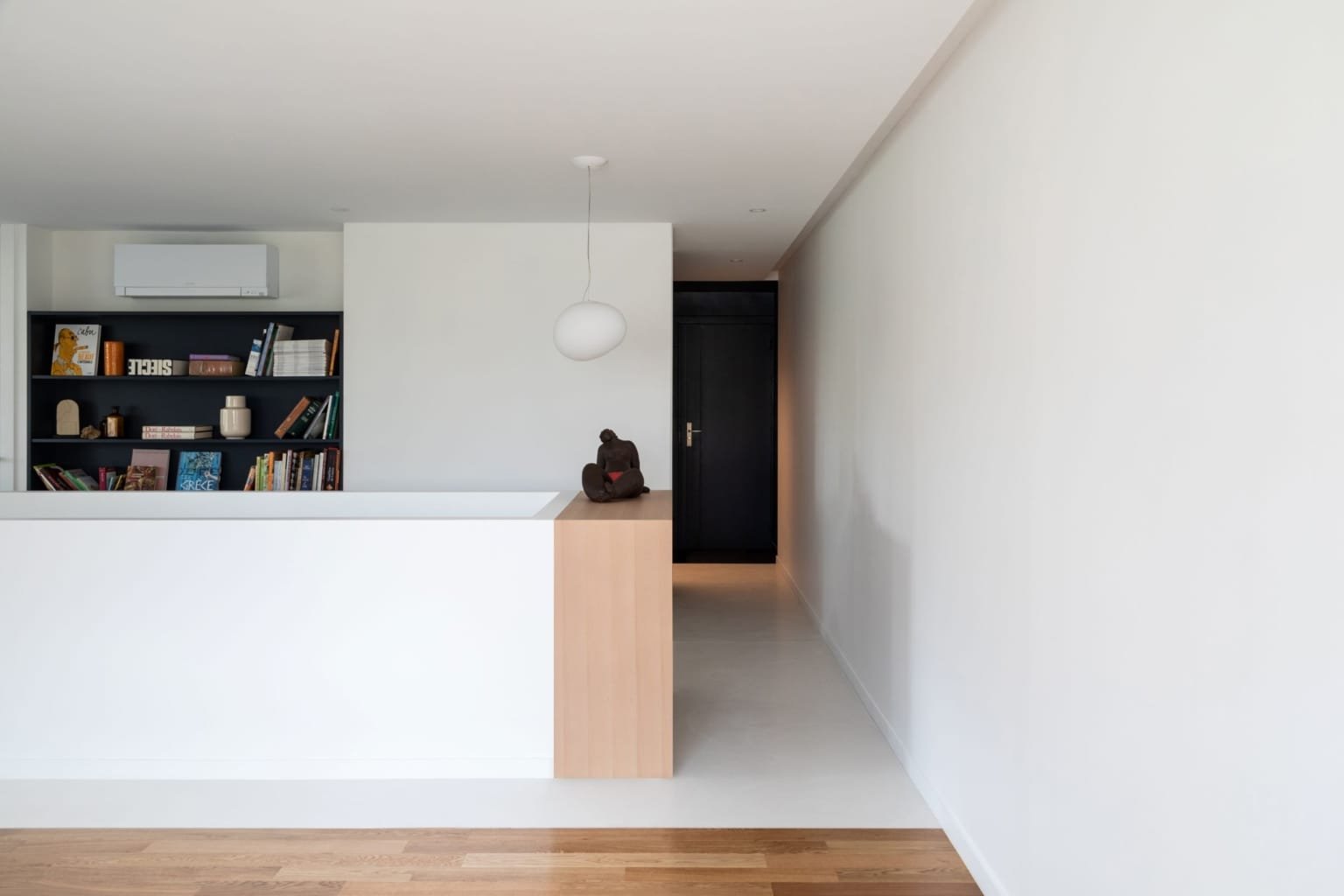 Un et un ne font qu’un. Né de la réunion de deux appartements modernistes, ce duplex tout en volumes se caractérise par son allure épuré. On y entre au second par la pièce de vie ; un plan libre offrant la meilleure vue sur la Marne. Un escalier central descend dans le prolongement de l’îlot pour distribuer les pièces de nuit tout en intimité. Grâce à cette transformation, Marie et Luc gardent leur adresse idyllique sur les bords de Marne et savourent tout le confort d’un appartement résolument contemporain à la pointe de la technologie.