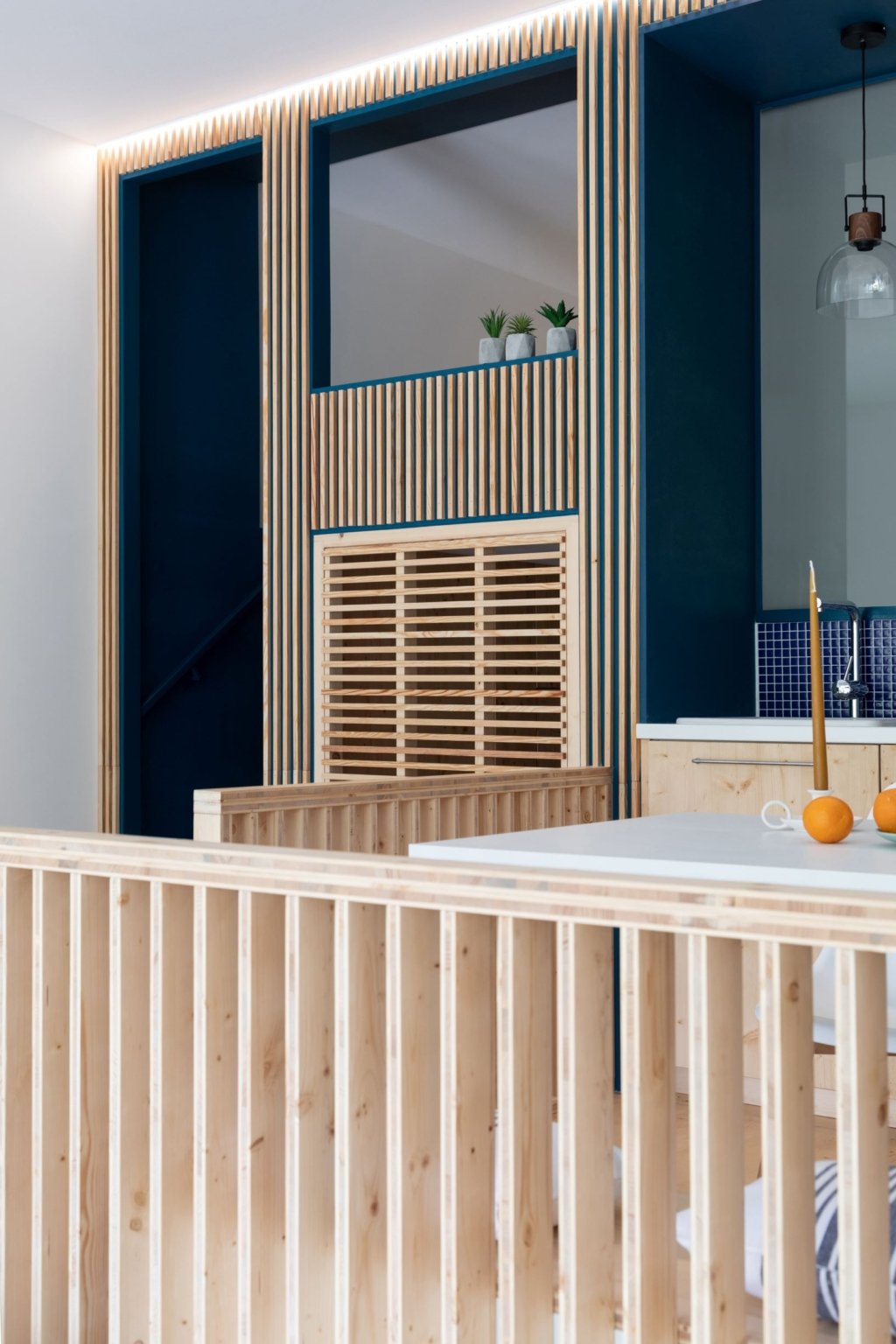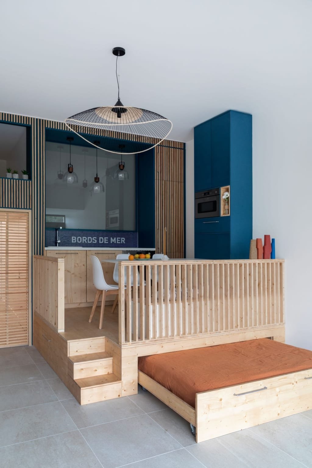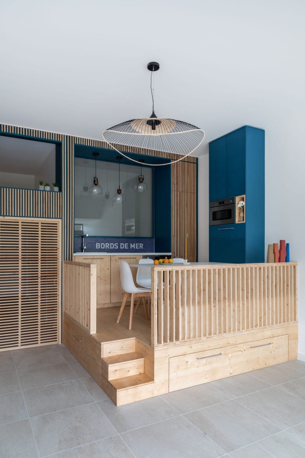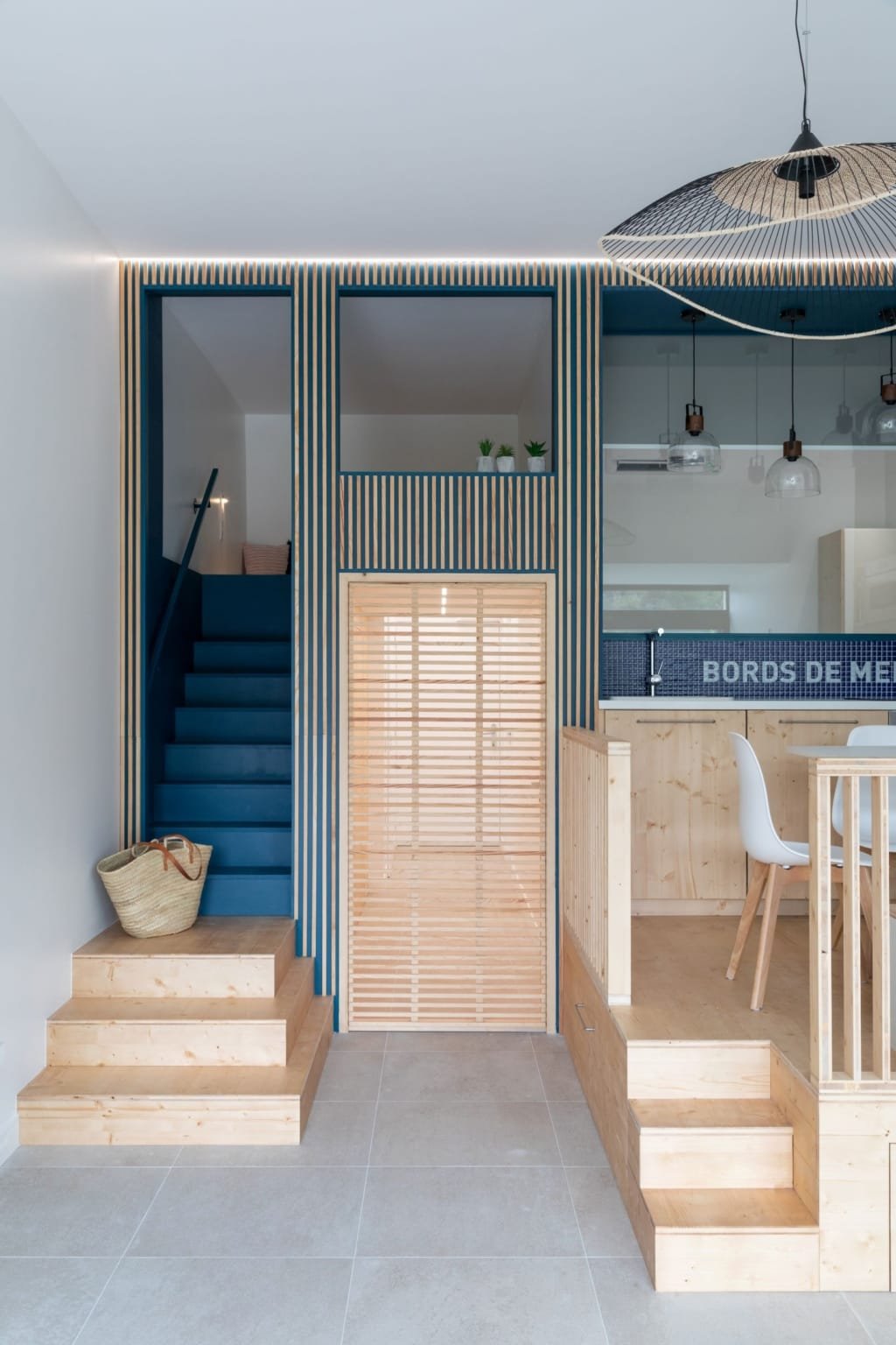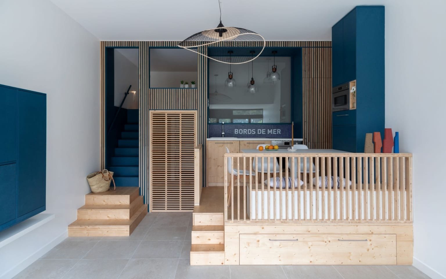Situé dans une pinède sur fond bleu, cet appartement plonge ses propriétaires en vacances dès leur arrivée. Les espaces s’articulent autour de jeux de niveaux et de transparence. Les matériaux s’inspirent de la méditerranée et son artisanat. Désormais, cet appartement de 56 m² peut accueillir 7 voyageurs confortablement pour un séjour hors du temps.