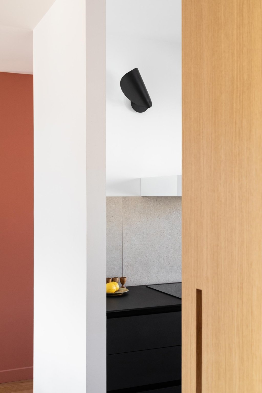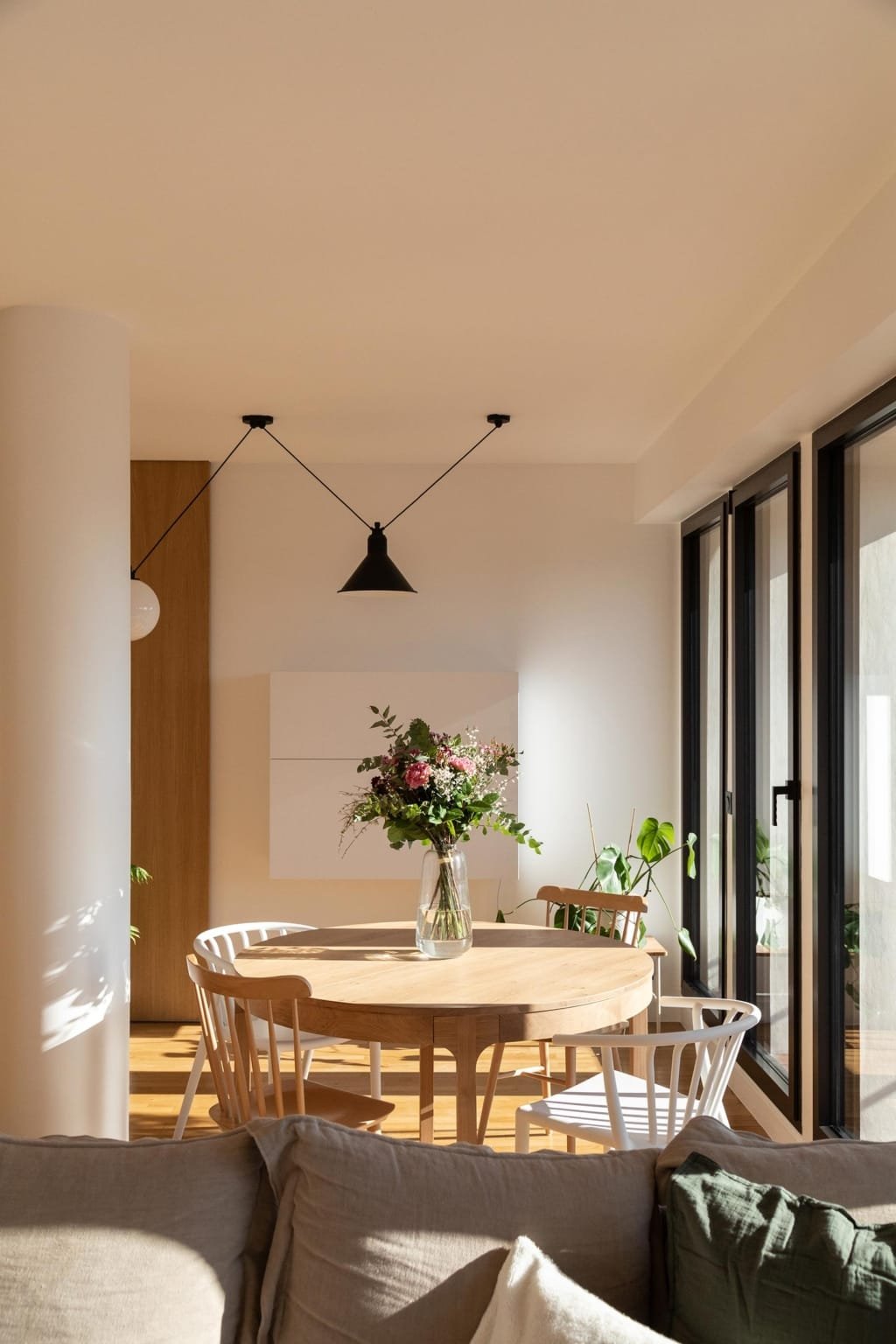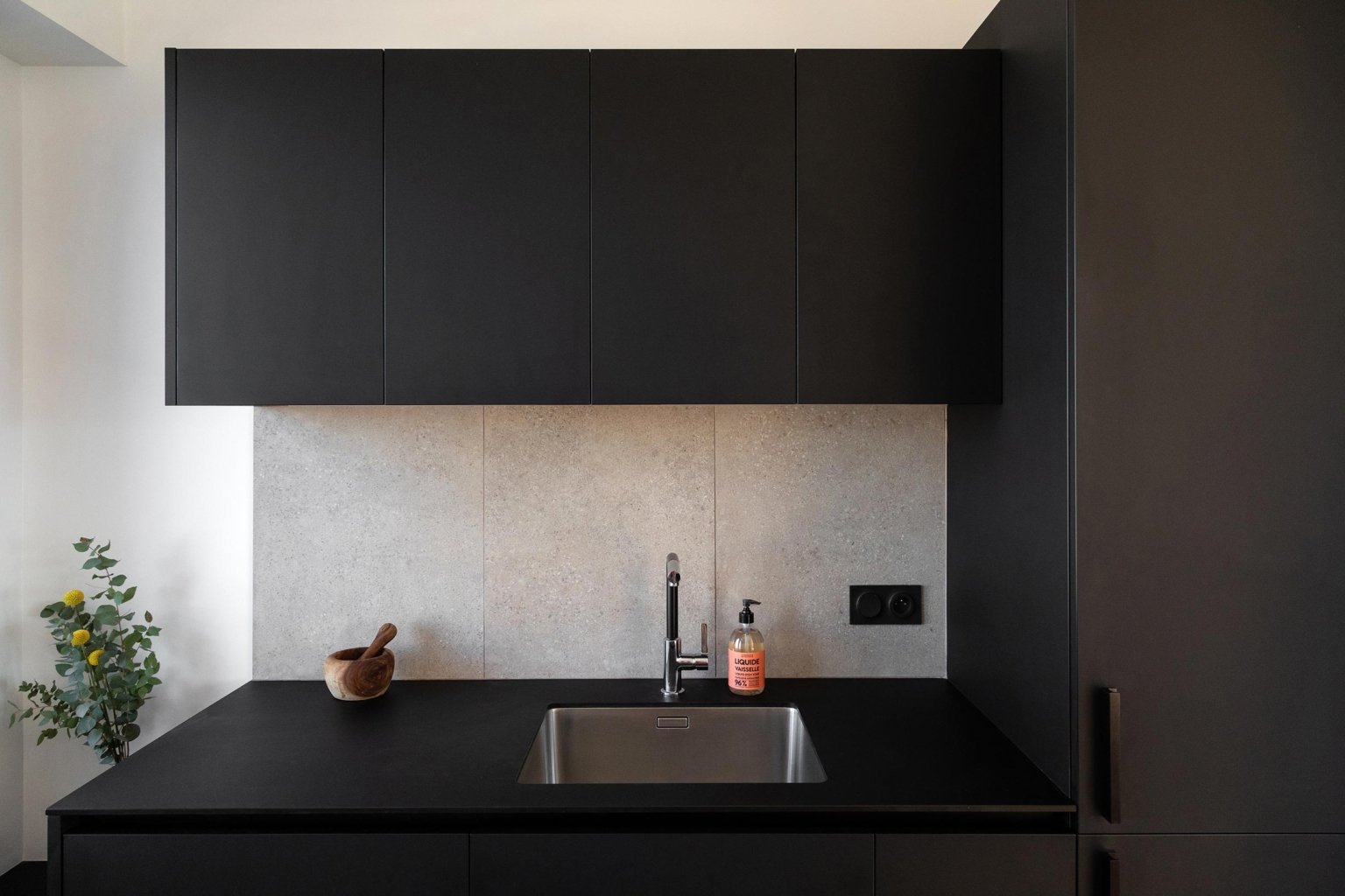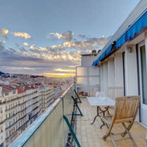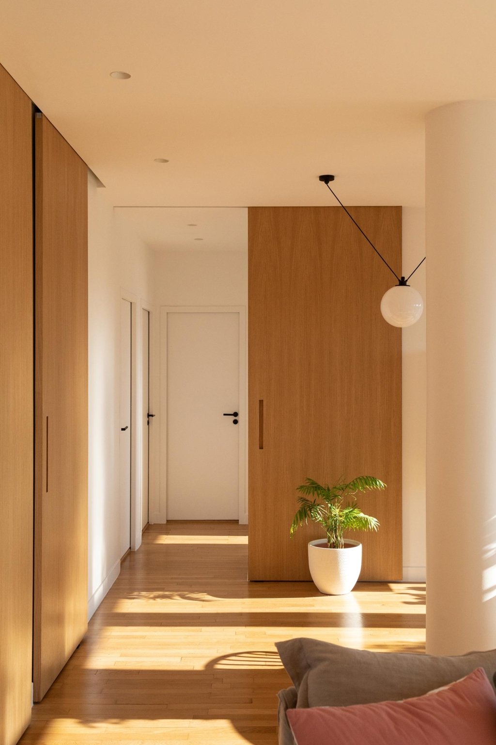 Situé au dernier étage du Building Canebière, œuvre conjointe des architectes F. Pouillon, R. Egger, et J.L. Sourdeau, cet appartement baigné de lumière domine Marseille. Grâce à la structure poteaux-poutres, le volume est entièrement réécrit sur la trame des menuiseries ; rythmées par des brise-soleil en béton. Les grandes portes en chêne et le parquet d’origine réchauffent de concert la pièce de vie. Des lignes claires et des tons doux soulignent la grande sérénité du lieu. Fernand Pouillon prônait la qualité de vie des habitants, l’artisanat et l’insertion dans le paysage. C’est dans cette continuité que s’inscrit cette rénovation.