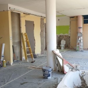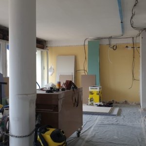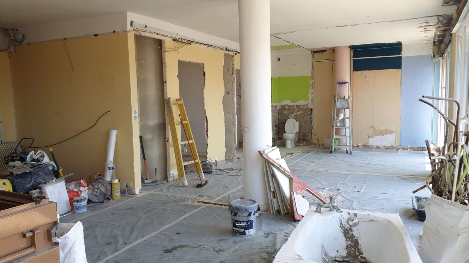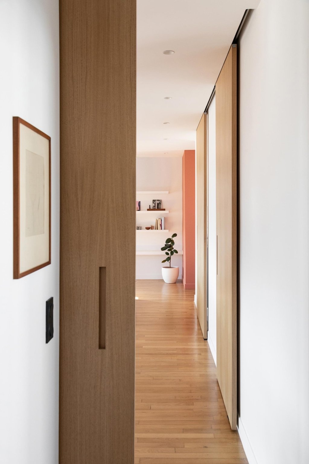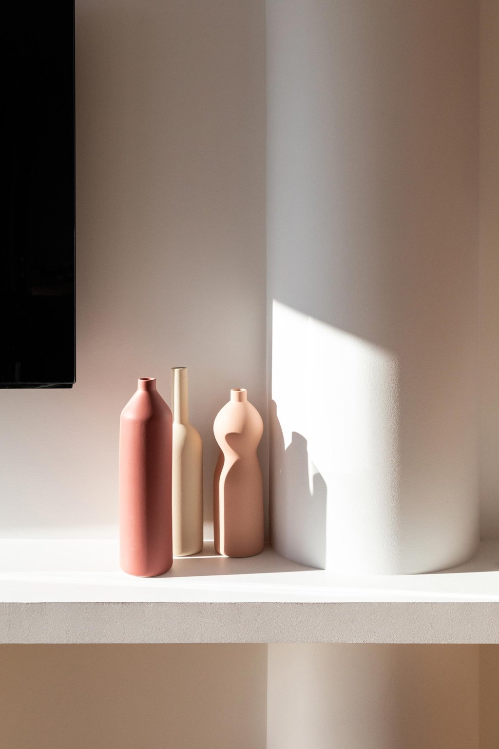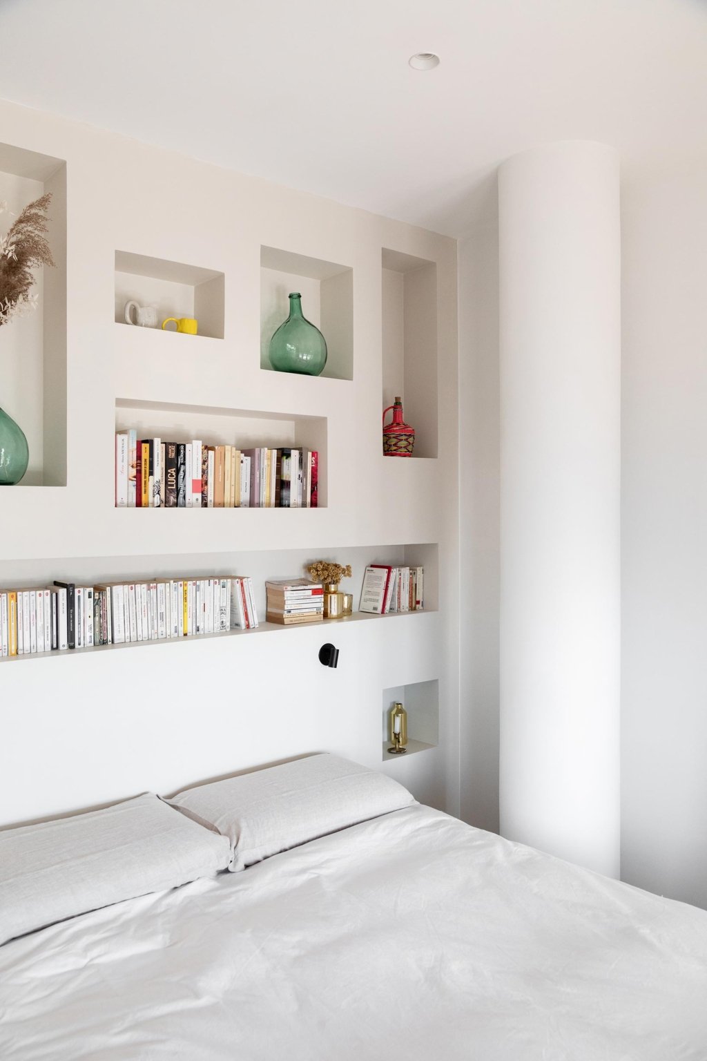 Situé au dernier étage du Building Canebière, œuvre conjointe des architectes F. Pouillon, R. Egger, et J.L. Sourdeau, cet appartement baigné de lumière domine Marseille. Grâce à la structure poteaux-poutres, le volume est entièrement réécrit sur la trame des menuiseries ; rythmées par des brise-soleil en béton. Les grandes portes en chêne et le parquet d’origine réchauffent de concert la pièce de vie. Des lignes claires et des tons doux soulignent la grande sérénité du lieu. Fernand Pouillon prônait la qualité de vie des habitants, l’artisanat et l’insertion dans le paysage. C’est dans cette continuité que s’inscrit cette rénovation.