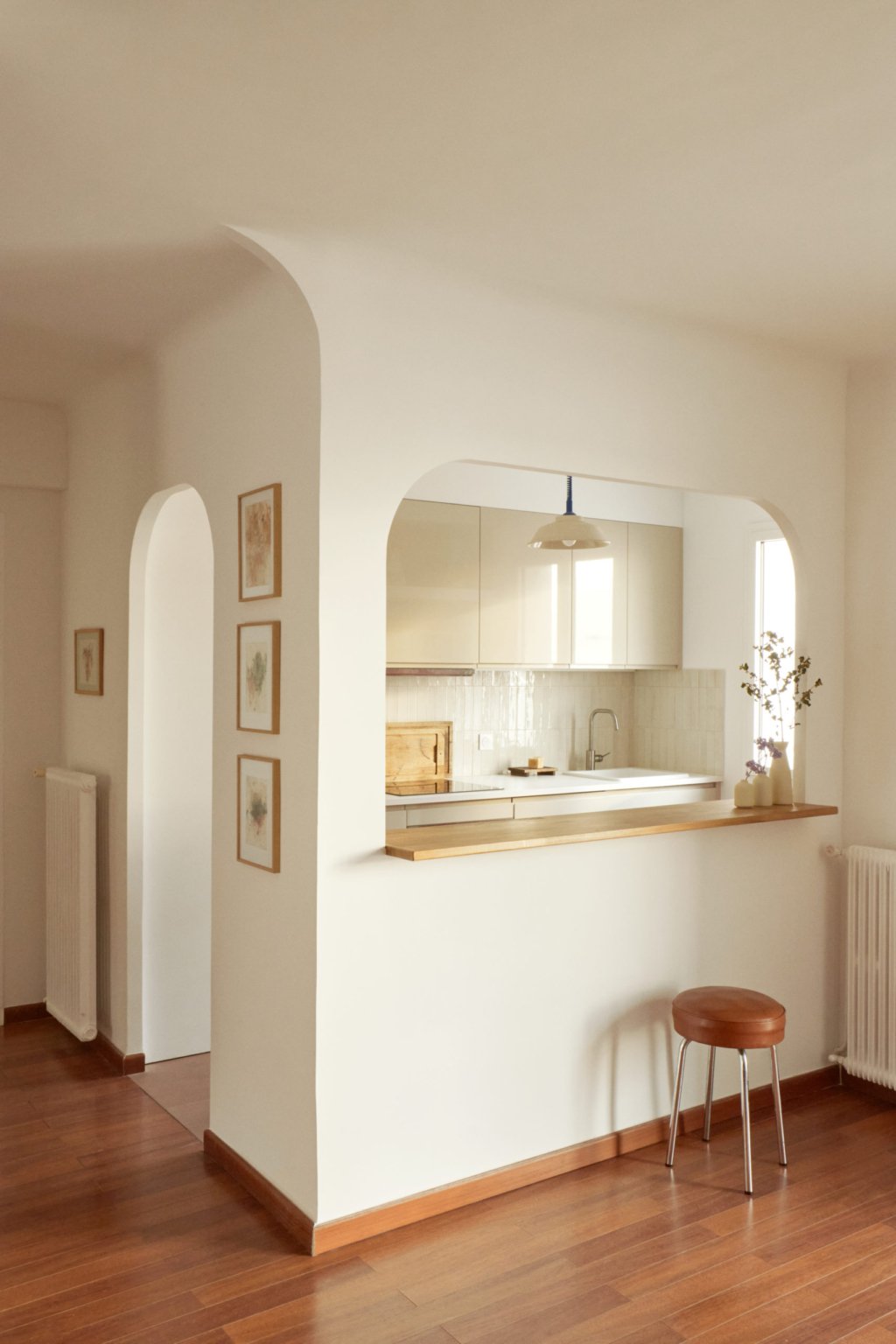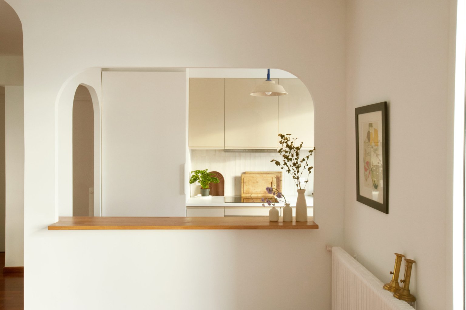 Située au premier étage d’un petit immeuble sur la Corniche à Marseille, la cuisine de cet appartement avait besoin d’être modernisée tout en s’harmonisant avec la pièce de vie, offrant une vue dégagée sur la mer. Le projet a consisté à décloisonner en douceur cet espace pour créer une cuisine lumineuse, dans des tons neutres et chauds. Le bar, véritable lien entre la cuisine et le séjour, propose un nouvel espace où l’on peut prendre un café tout en admirant les îles du Frioul à l’horizon.