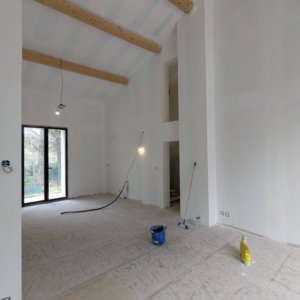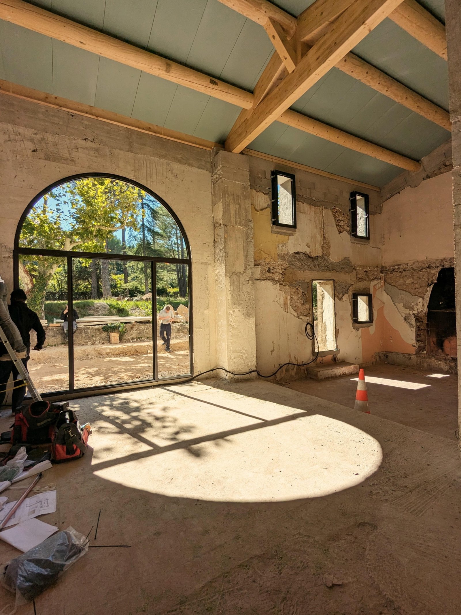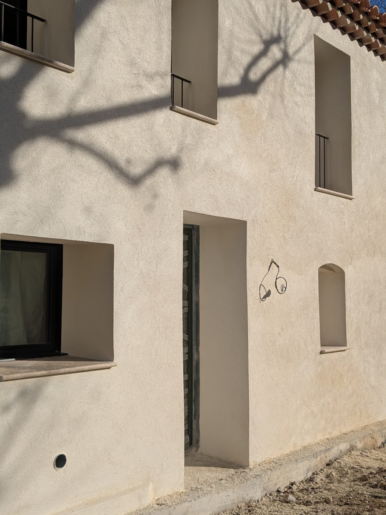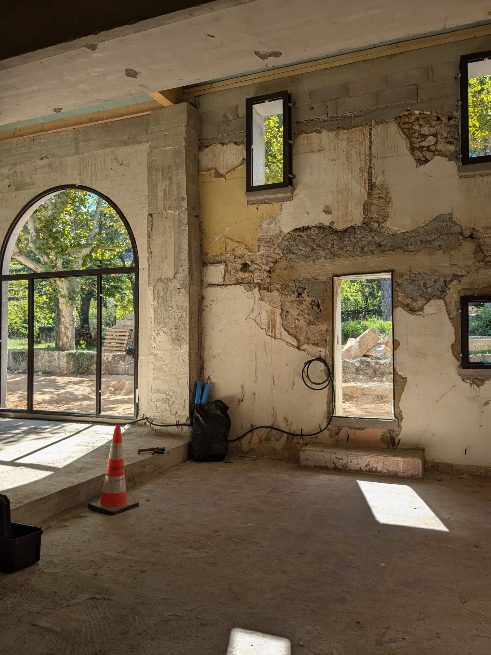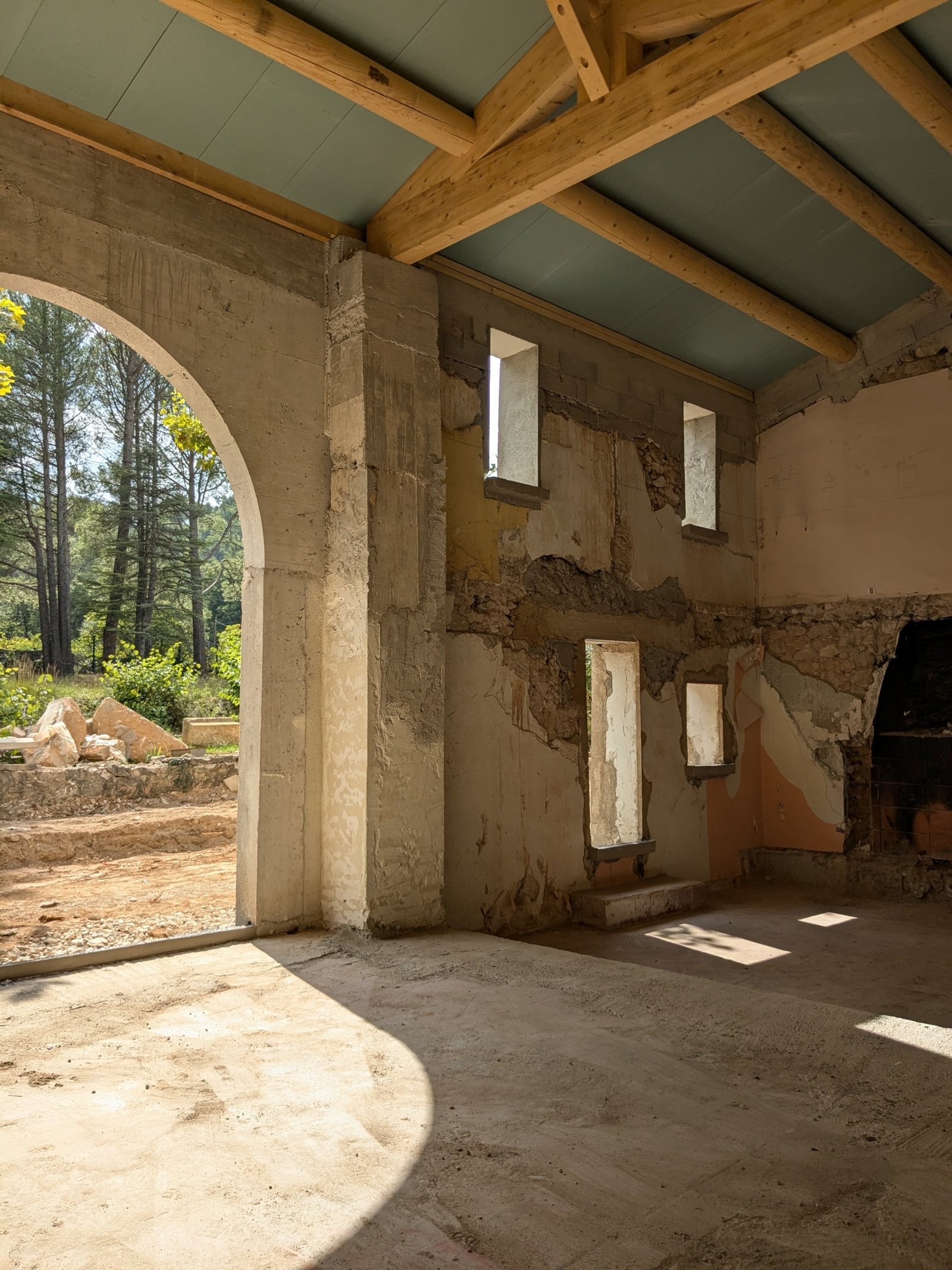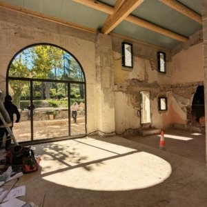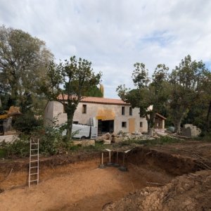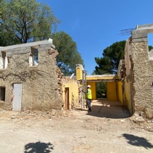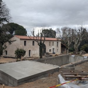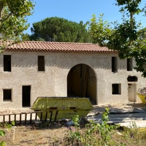 Rénovation lourde et ambitieuse d’un ancien corps de ferme du XVIIIᵉ siècle situé dans un domaine à la nature préservée, près d’Aix-en-Provence et de la Sainte-Victoire. Transformée en habitation dans les années 70, la bâtisse présentait de petites pièces sombres, des niveaux redécoupés et des plafonds bas. Le projet revisite entièrement l’ensemble en ouvrant largement les volumes et en supprimant les planchers sur une grande partie afin de créer une pièce de vie en double hauteur. Une nouvelle couverture et sa charpente en bois, associées à une isolation complète, redonnent confort, souffle et cohérence au mas.
