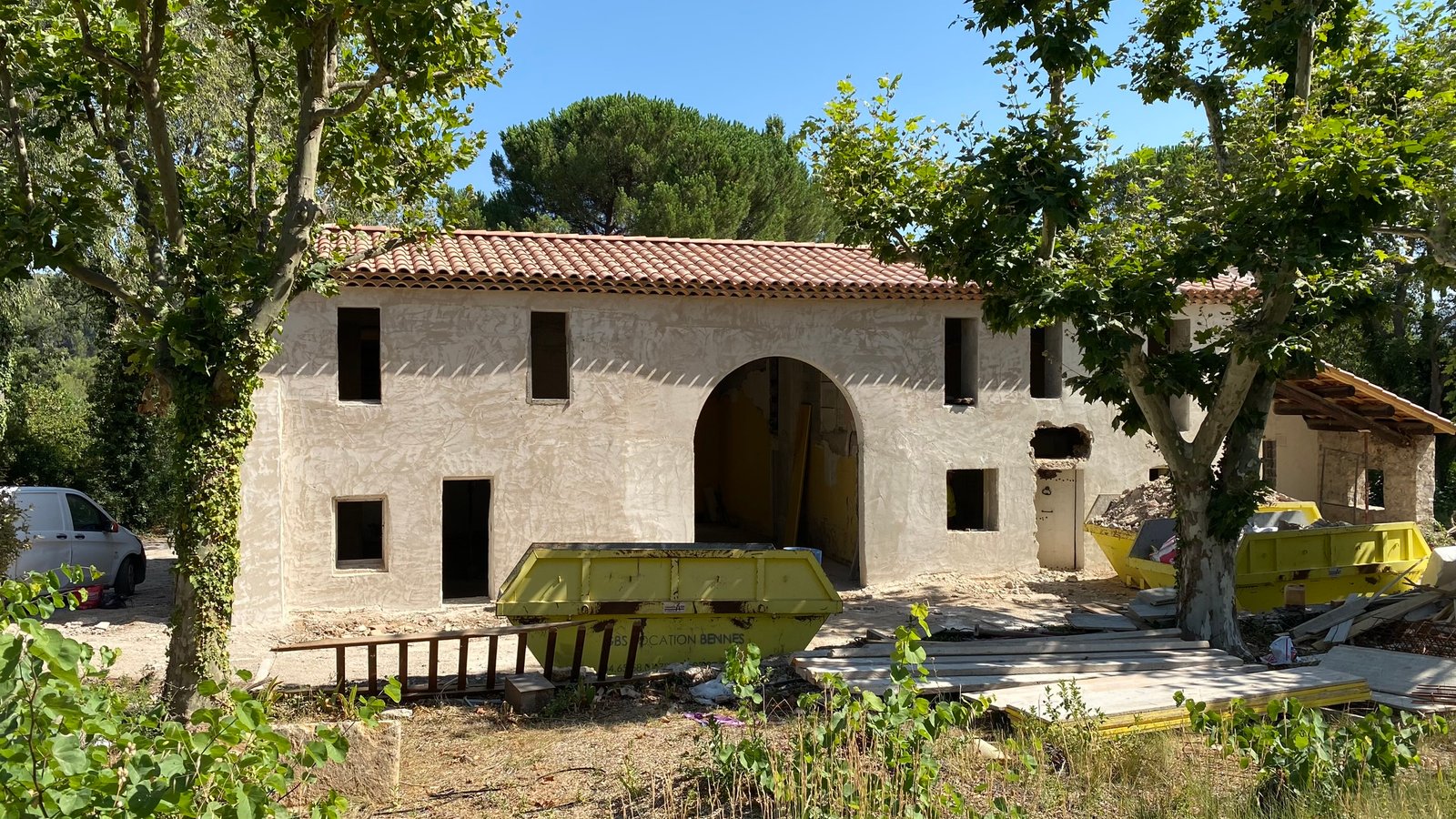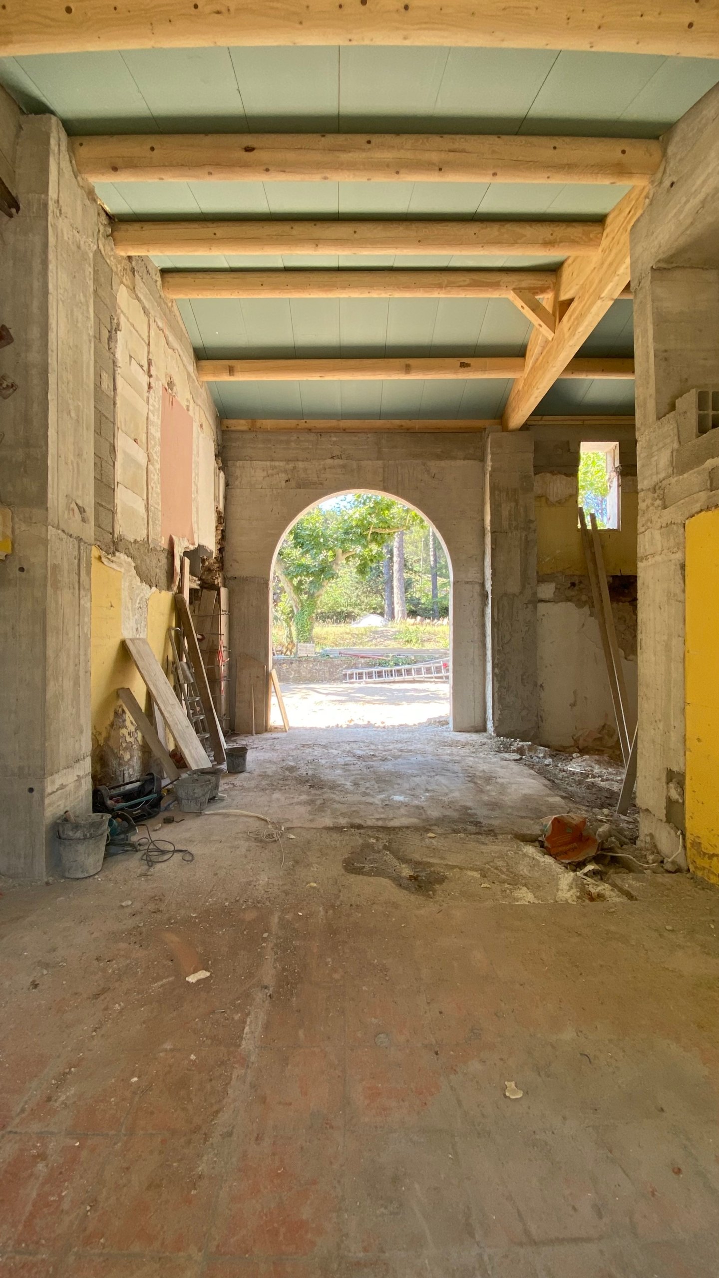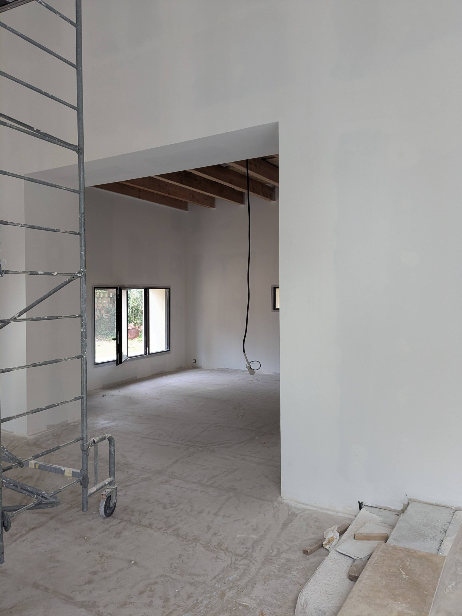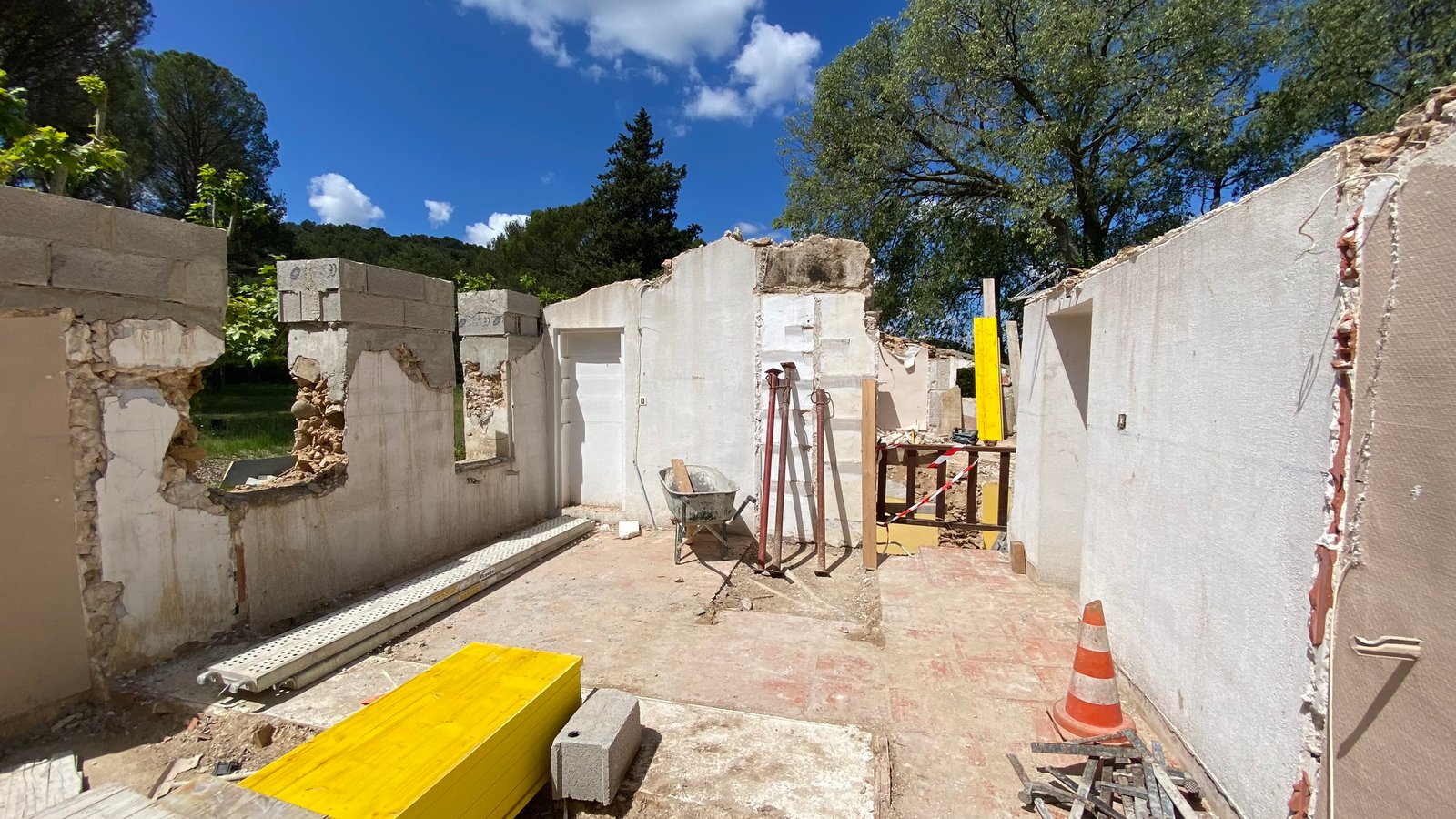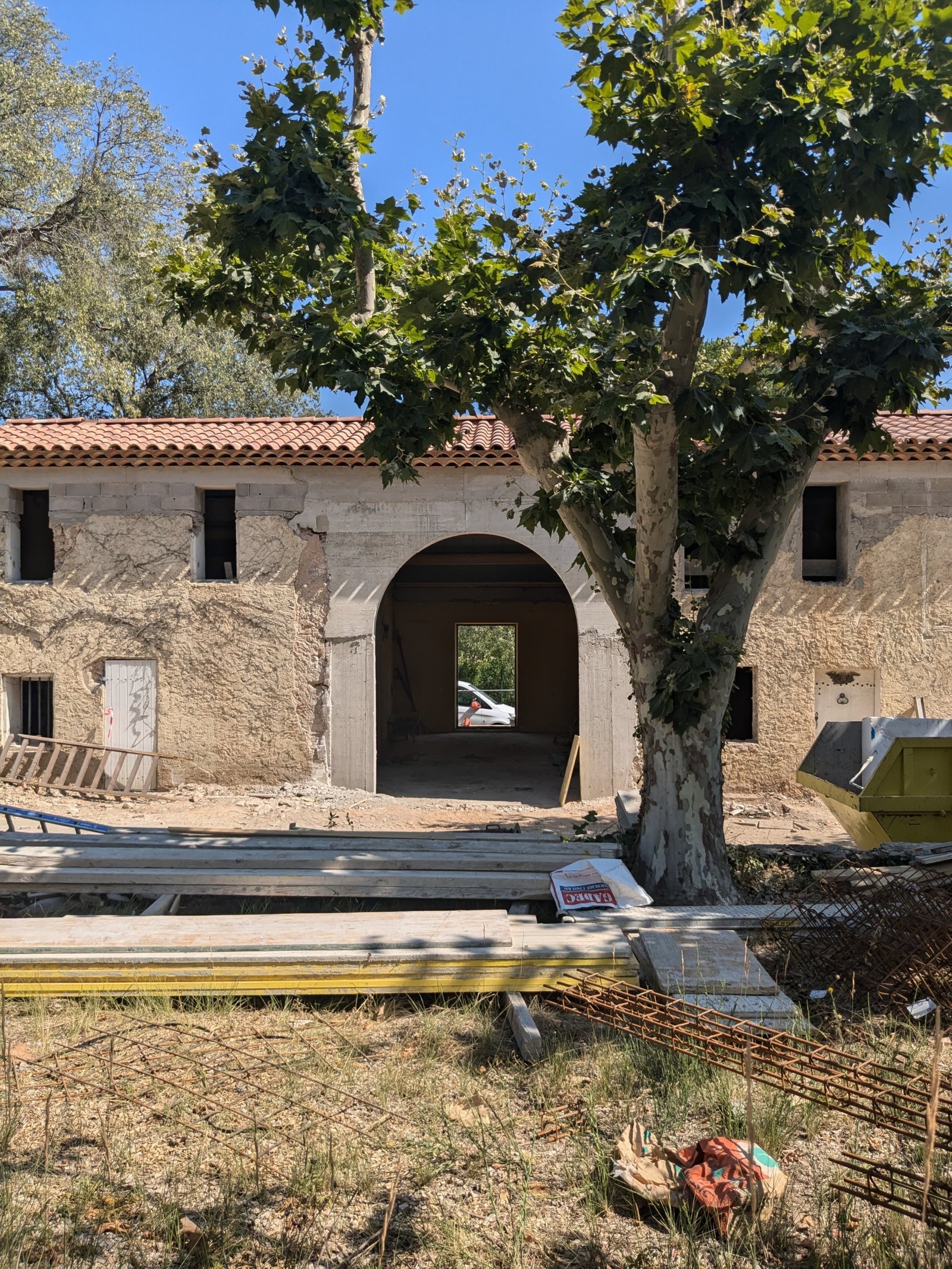 Rénovation lourde et ambitieuse d’un ancien corps de ferme du XVIIIᵉ siècle situé dans un domaine à la nature préservée, près d’Aix-en-Provence et de la Sainte-Victoire. Transformée en habitation dans les années 70, la bâtisse présentait de petites pièces sombres, des niveaux redécoupés et des plafonds bas. Le projet revisite entièrement l’ensemble en ouvrant largement les volumes et en supprimant les planchers sur une grande partie afin de créer une pièce de vie en double hauteur. Une nouvelle couverture et sa charpente en bois, associées à une isolation complète, redonnent confort, souffle et cohérence au mas.