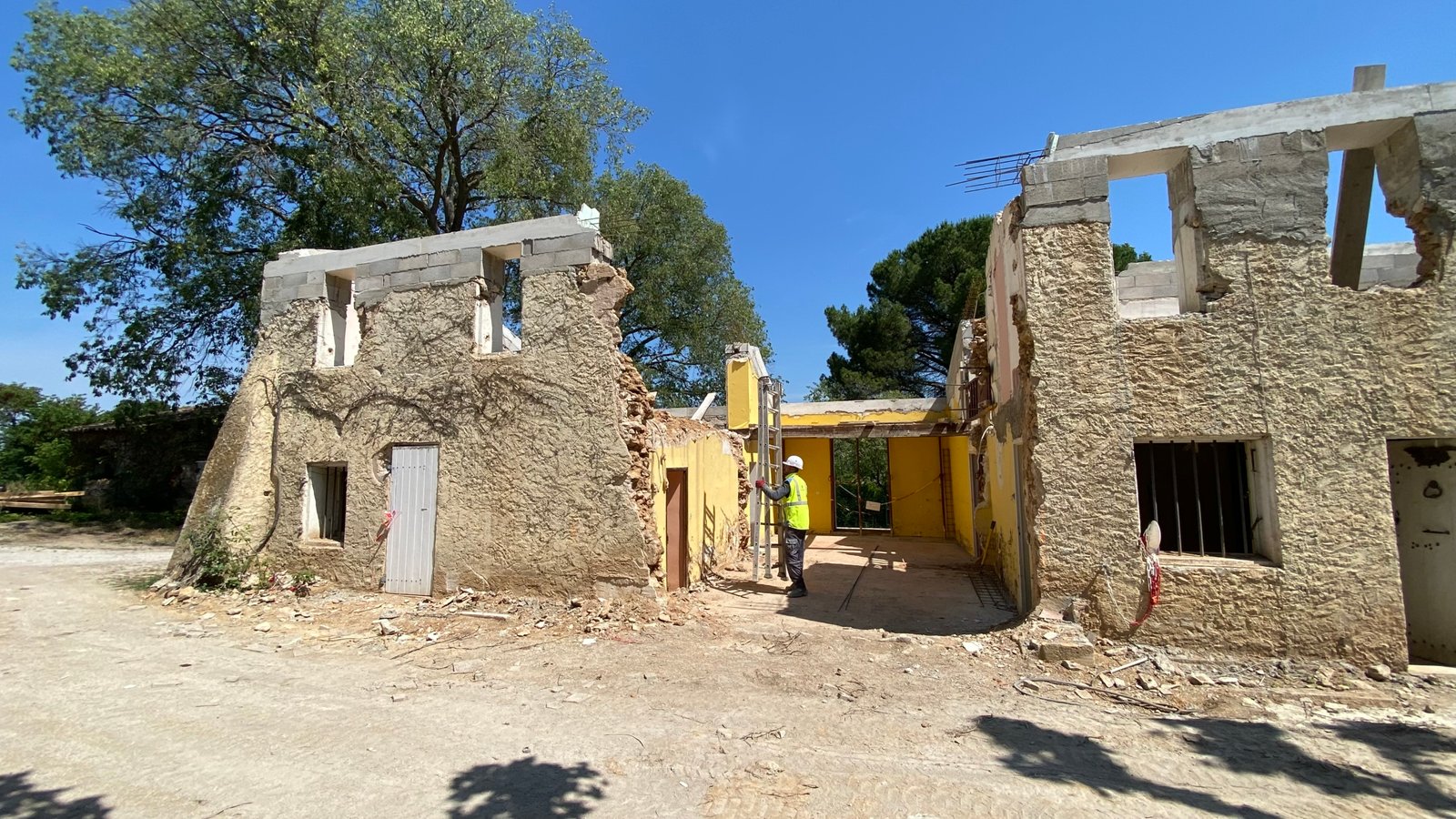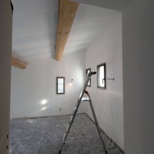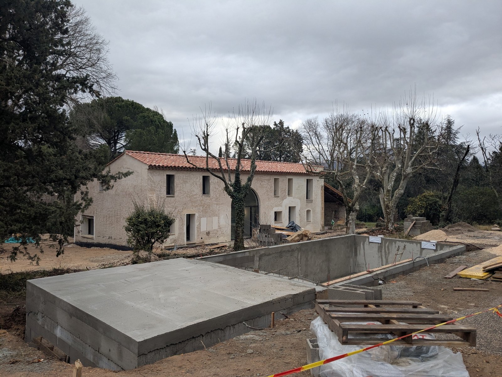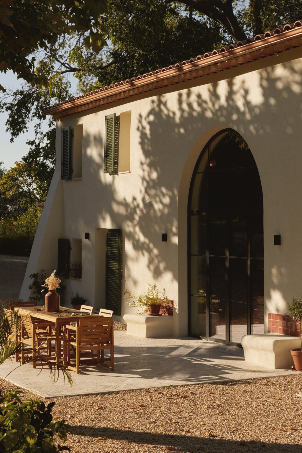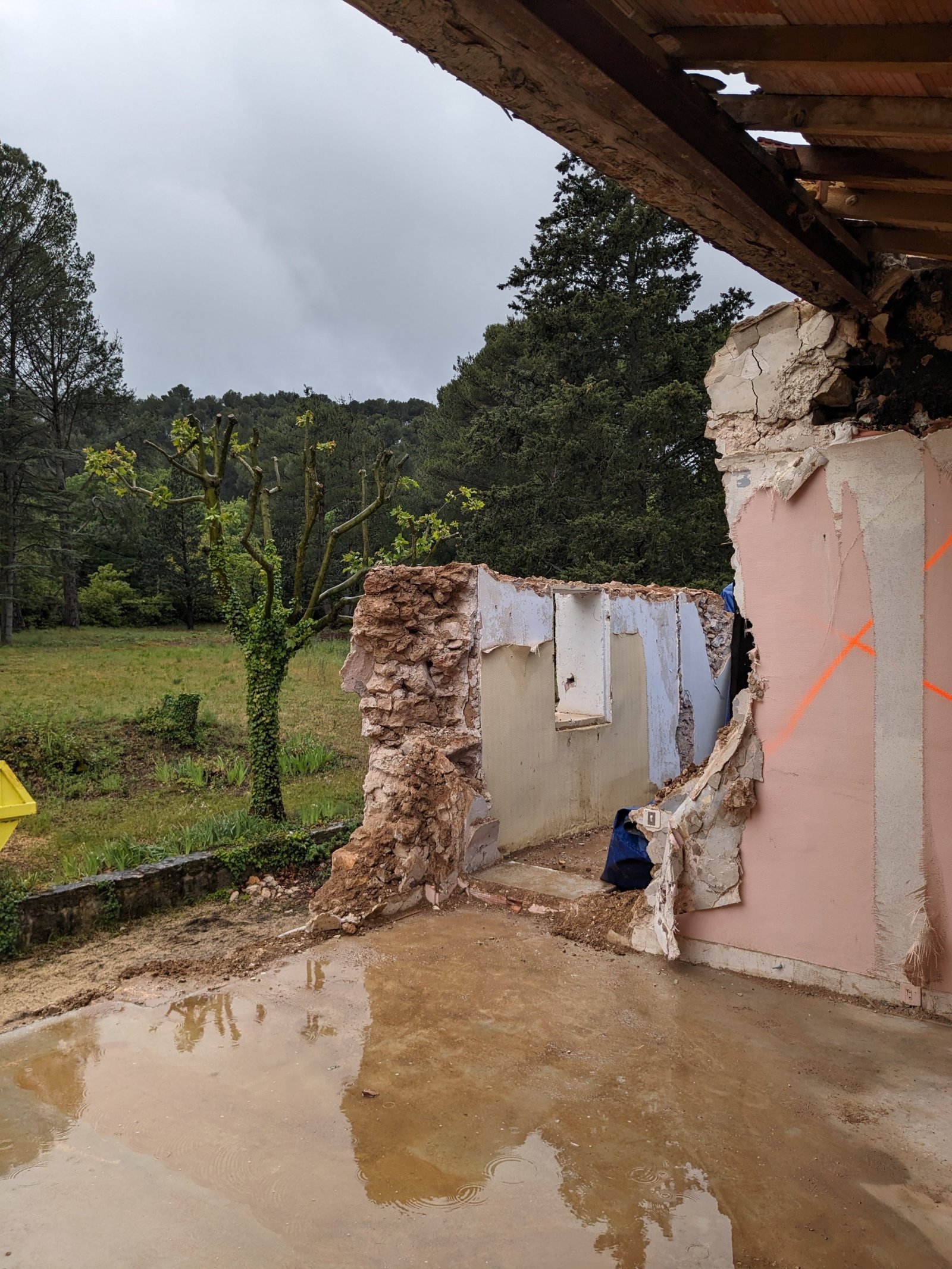 Rénovation lourde et ambitieuse d’un ancien corps de ferme du XVIIIᵉ siècle situé dans un domaine à la nature préservée, près d’Aix-en-Provence et de la Sainte-Victoire. Transformée en habitation dans les années 70, la bâtisse présentait de petites pièces sombres, des niveaux redécoupés et des plafonds bas. Le projet revisite entièrement l’ensemble en ouvrant largement les volumes et en supprimant les planchers sur une grande partie afin de créer une pièce de vie en double hauteur. Une nouvelle couverture et sa charpente en bois, associées à une isolation complète, redonnent confort, souffle et cohérence au mas.