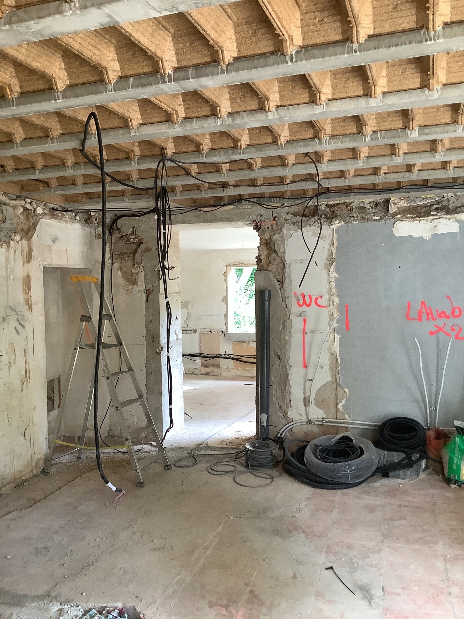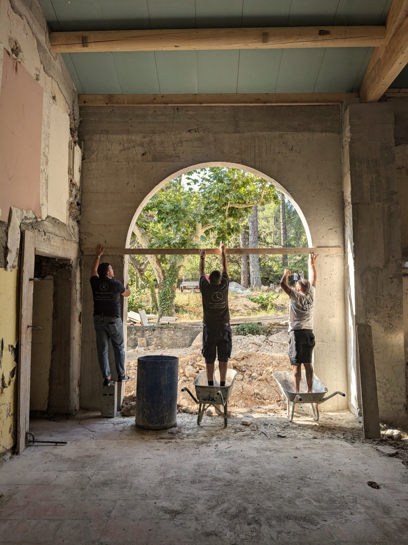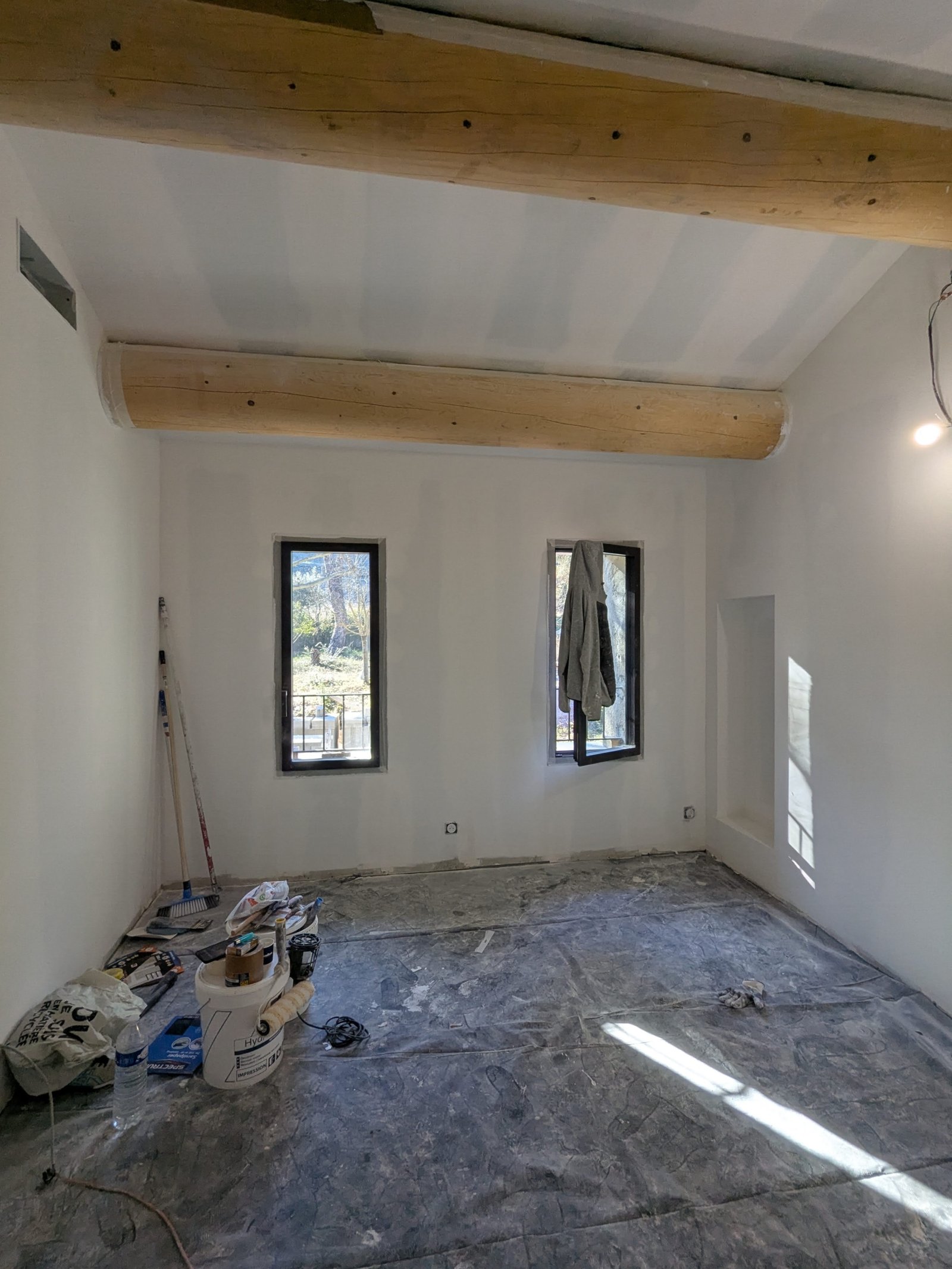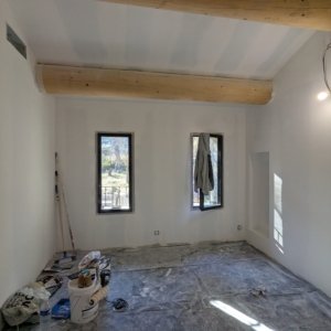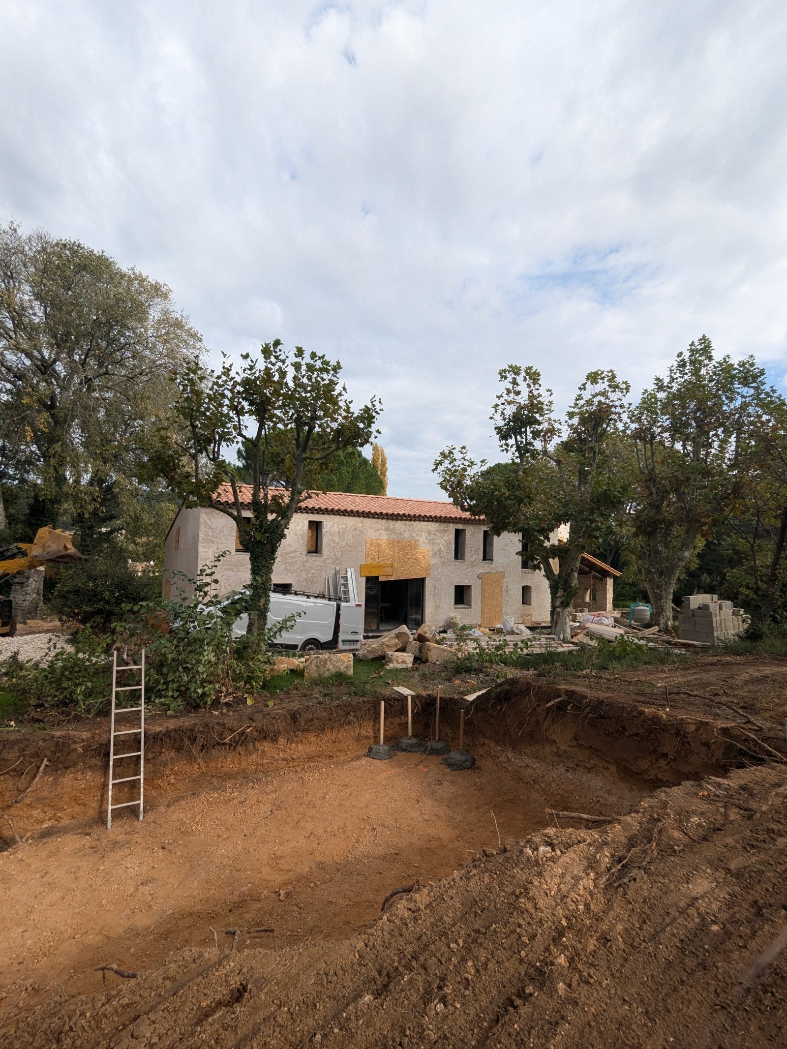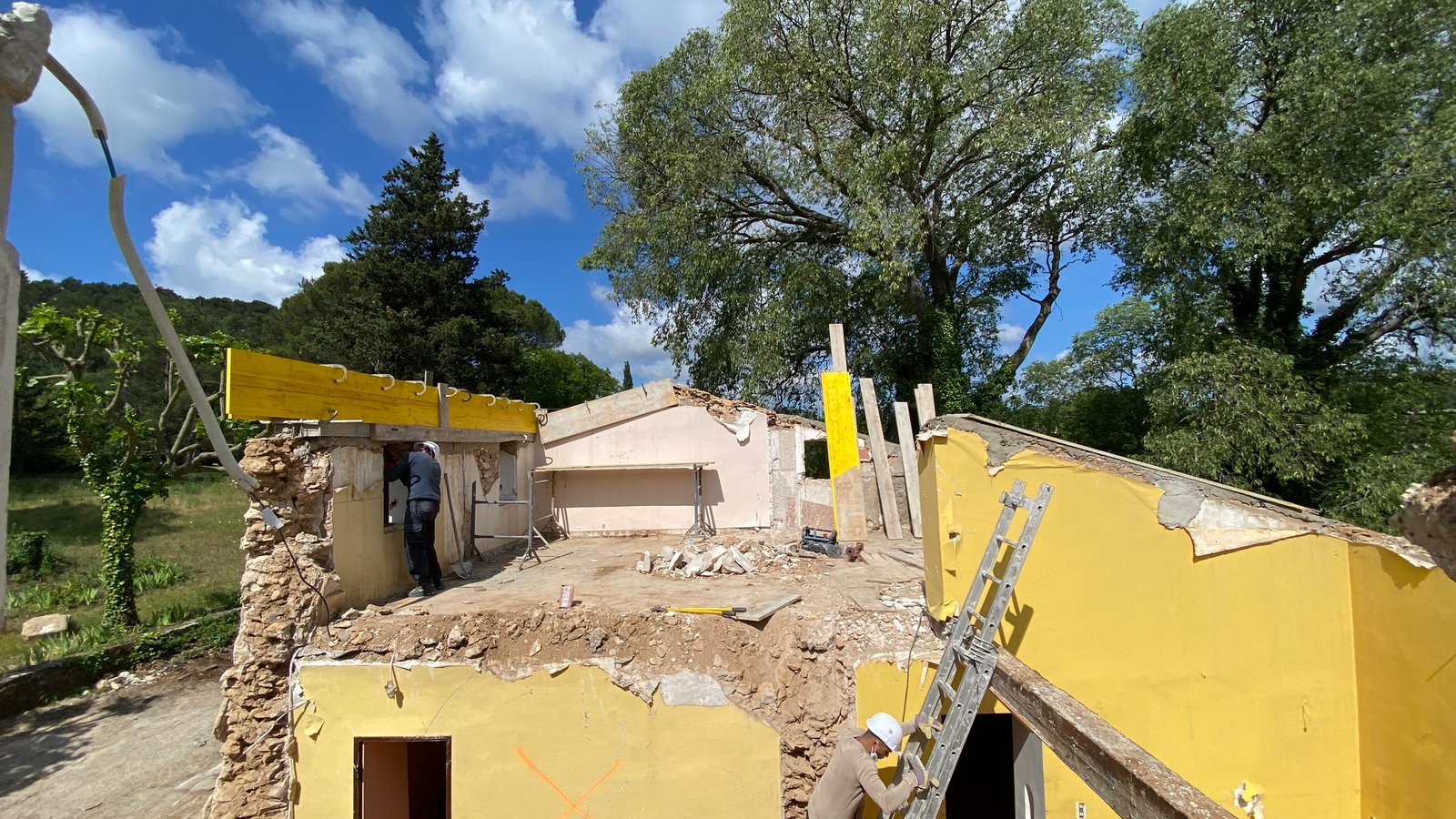Rénovation lourde et ambitieuse d’un ancien corps de ferme du XVIIIᵉ siècle situé dans un domaine à la nature préservée, près d’Aix-en-Provence et de la Sainte-Victoire. Transformée en habitation dans les années 70, la bâtisse présentait de petites pièces sombres, des niveaux redécoupés et des plafonds bas. Le projet revisite entièrement l’ensemble en ouvrant largement les volumes et en supprimant les planchers sur une grande partie afin de créer une pièce de vie en double hauteur. Une nouvelle couverture et sa charpente en bois, associées à une isolation complète, redonnent confort, souffle et cohérence au mas.