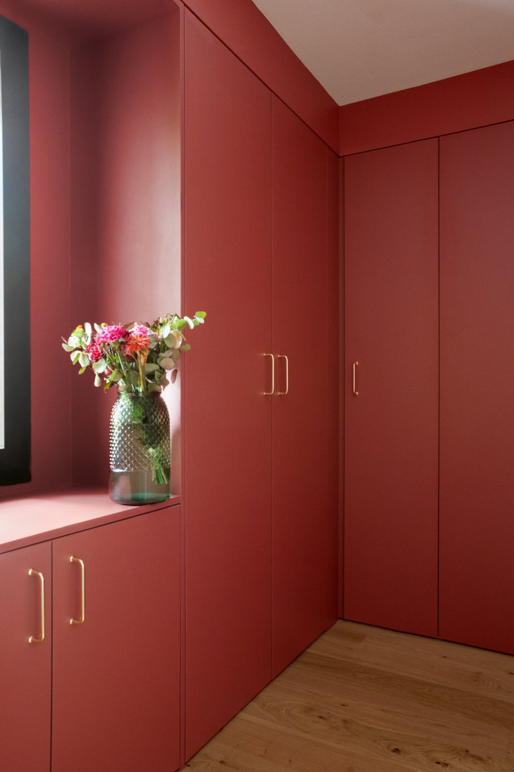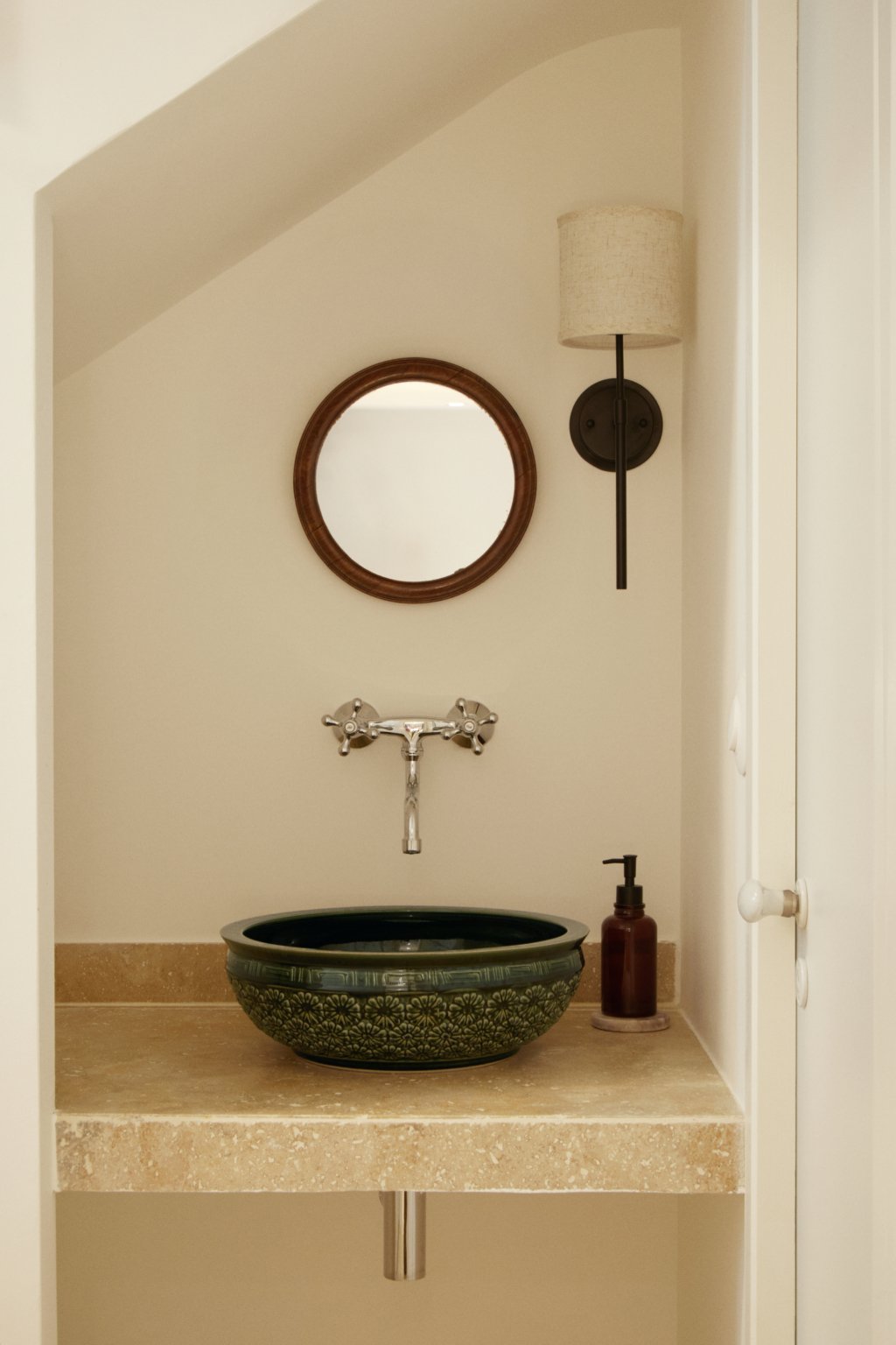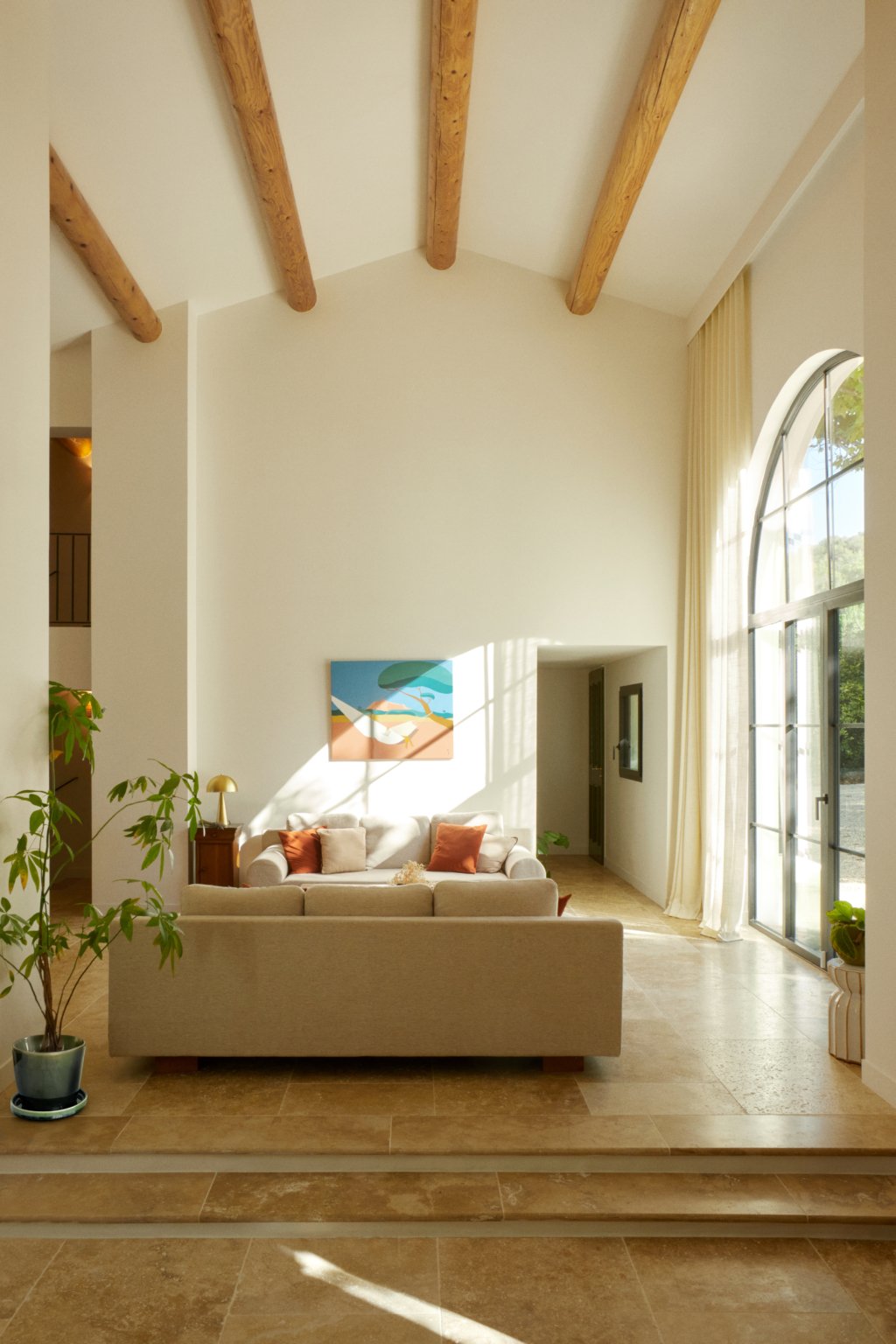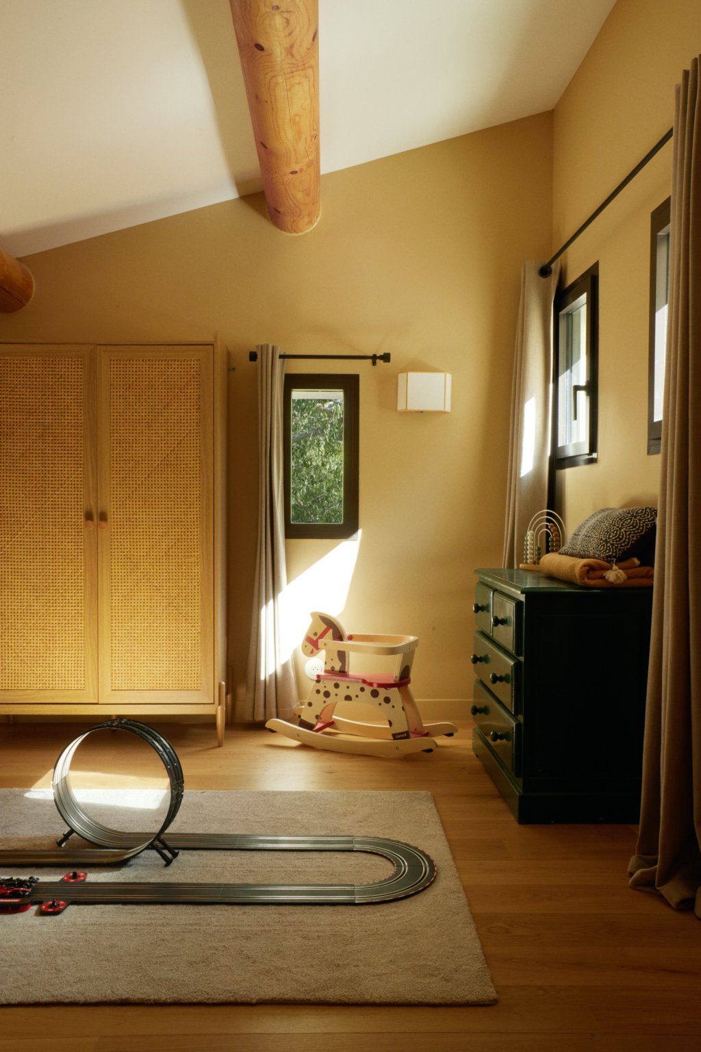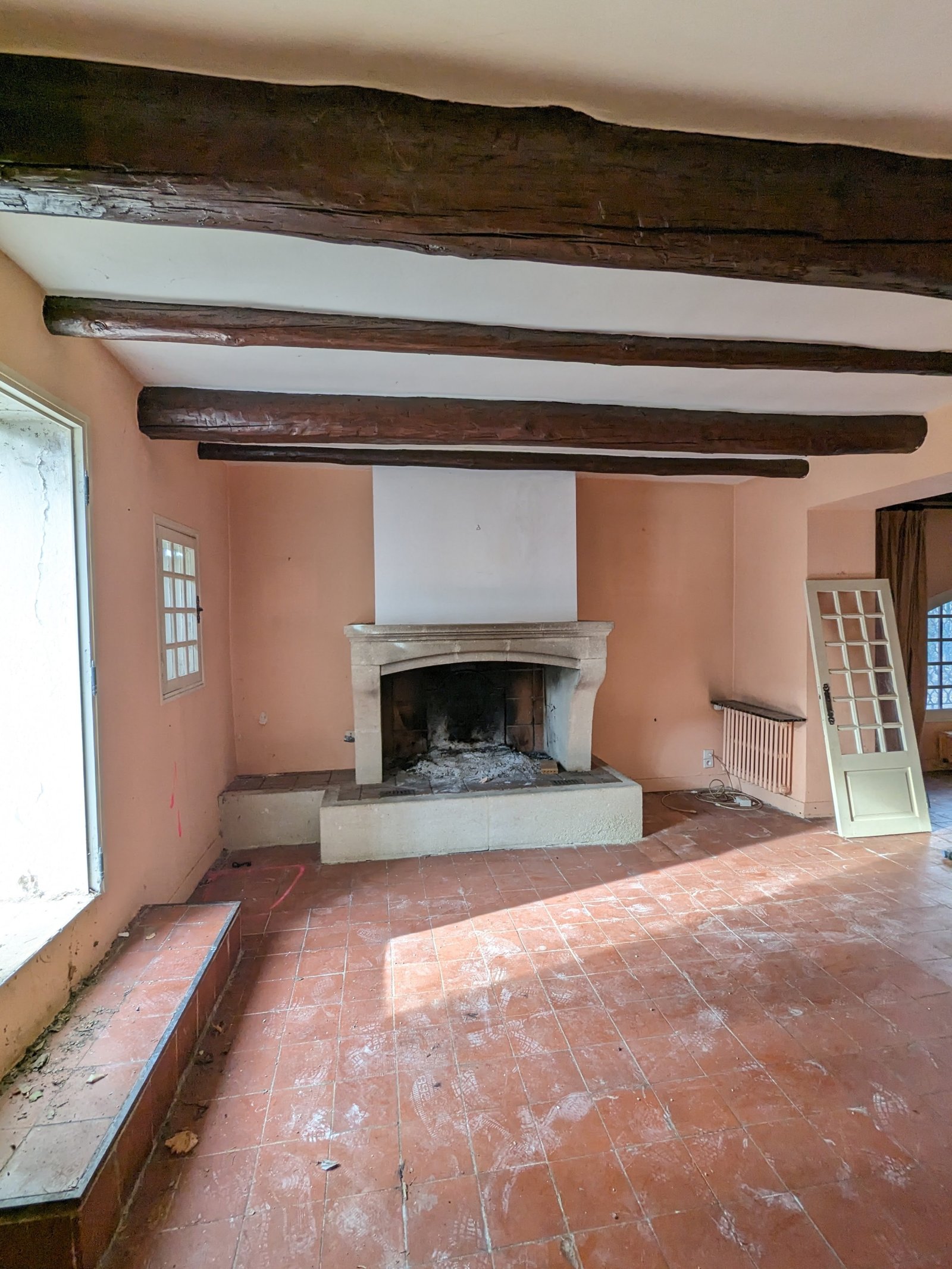Au sud, une grande baie cintrée signe l’intervention et offre un lien constant avec la nature environnante. À l’Ouest, les espaces de vie sont généreux — salon, cuisine, bibliothèque, salle à manger. À l’Est, les espaces nuit offrent charme, authenticité et intimité avec une suite parentale au rez-de-chaussée ; trois chambres à l’étage et leur salle de bain sur un niveau intermédiaire. Un ancien corps de ferme devenu une grande maison de famille.