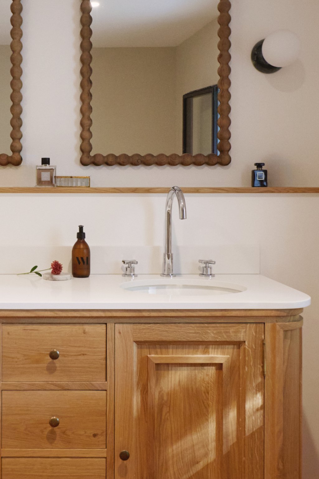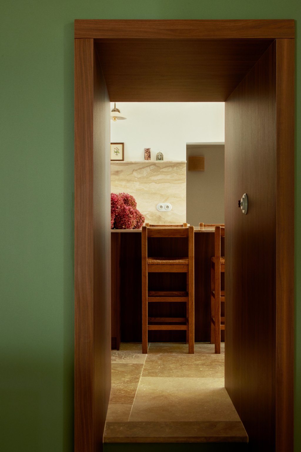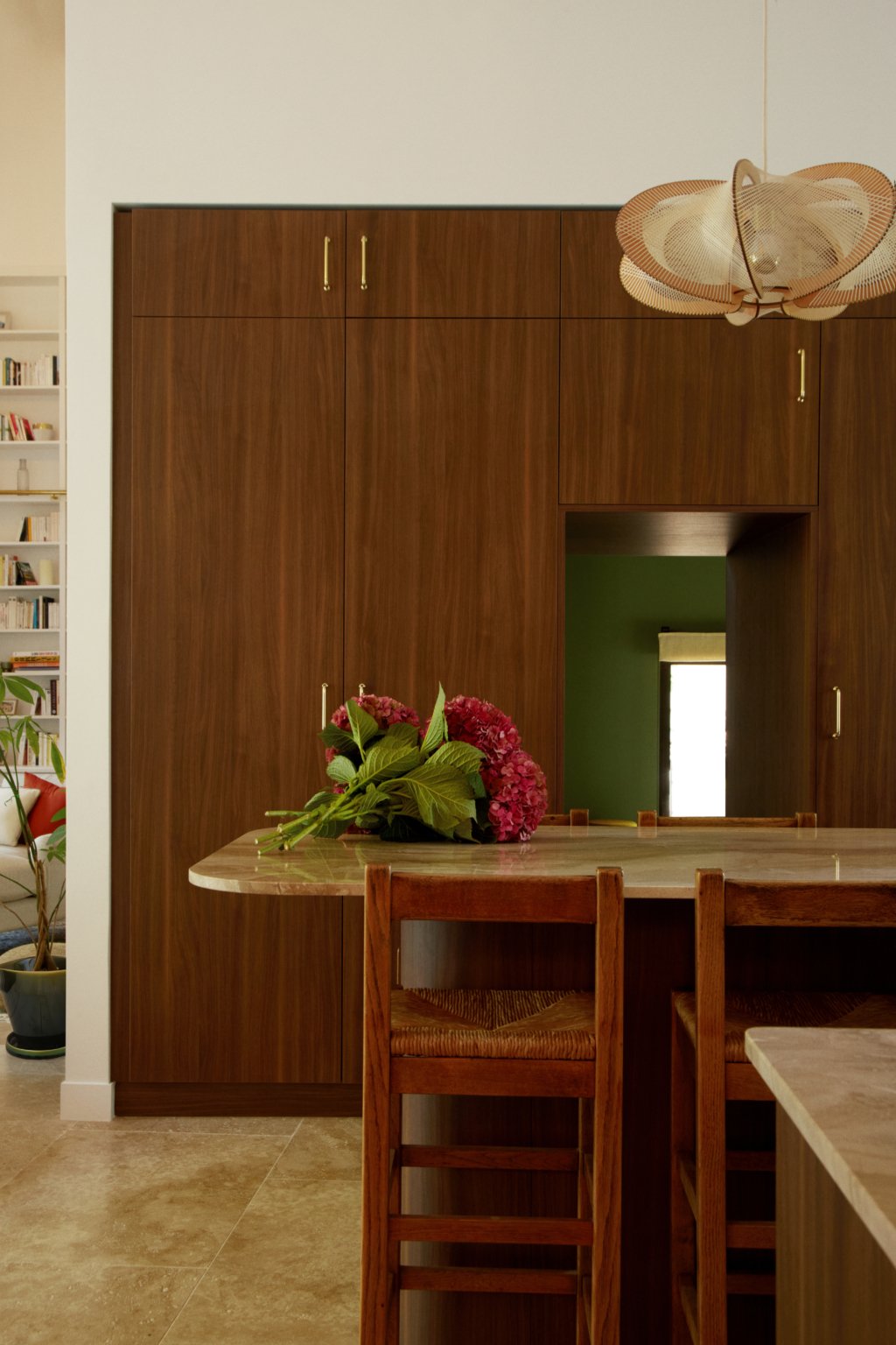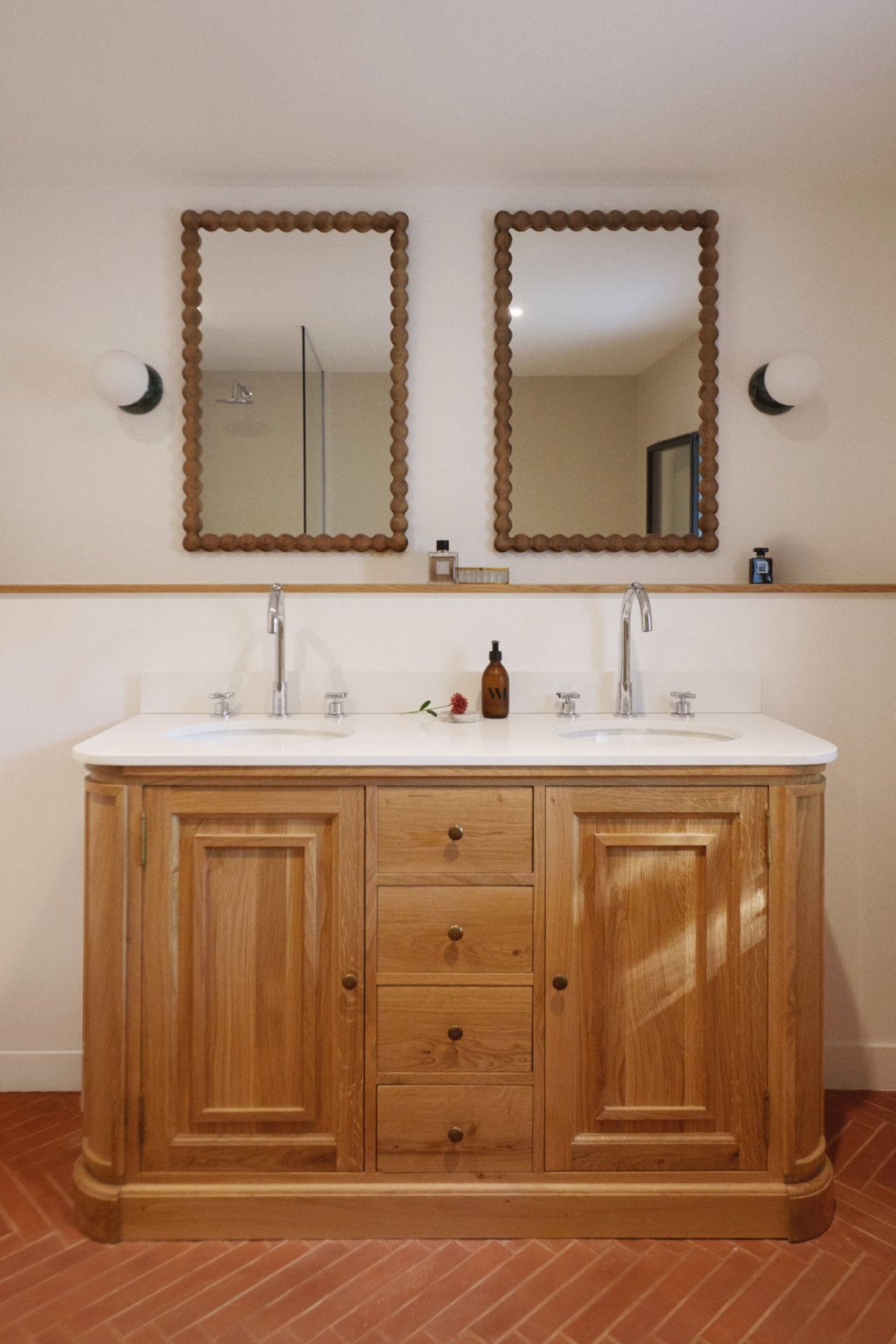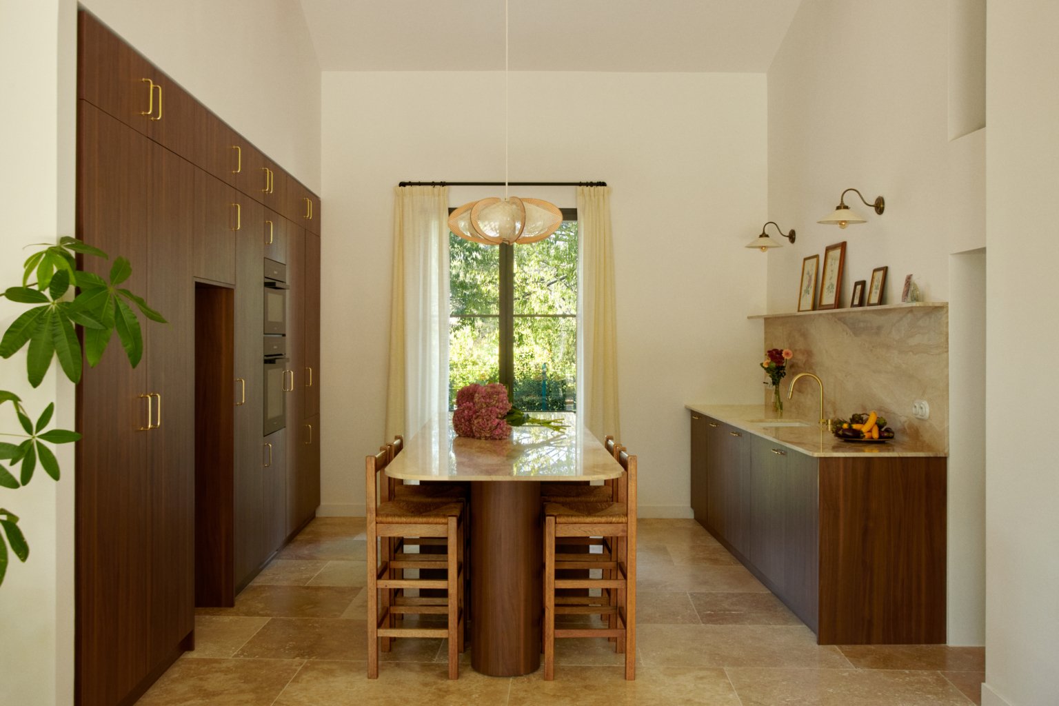 Au sud, une grande baie cintrée signe l’intervention et offre un lien constant avec la nature environnante. À l’Ouest, les espaces de vie sont généreux — salon, cuisine, bibliothèque, salle à manger. À l’Est, les espaces nuit offrent charme, authenticité et intimité avec une suite parentale au rez-de-chaussée ; trois chambres à l’étage et leur salle de bain sur un niveau intermédiaire. Un ancien corps de ferme devenu une grande maison de famille.