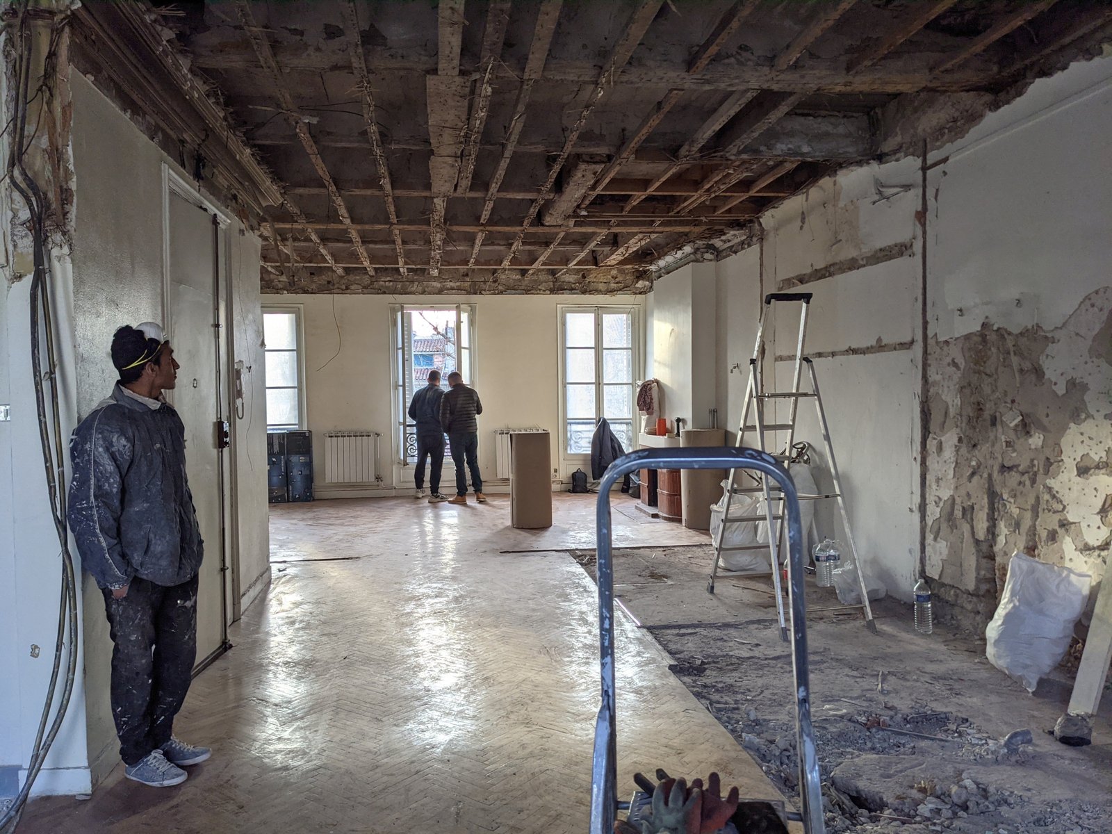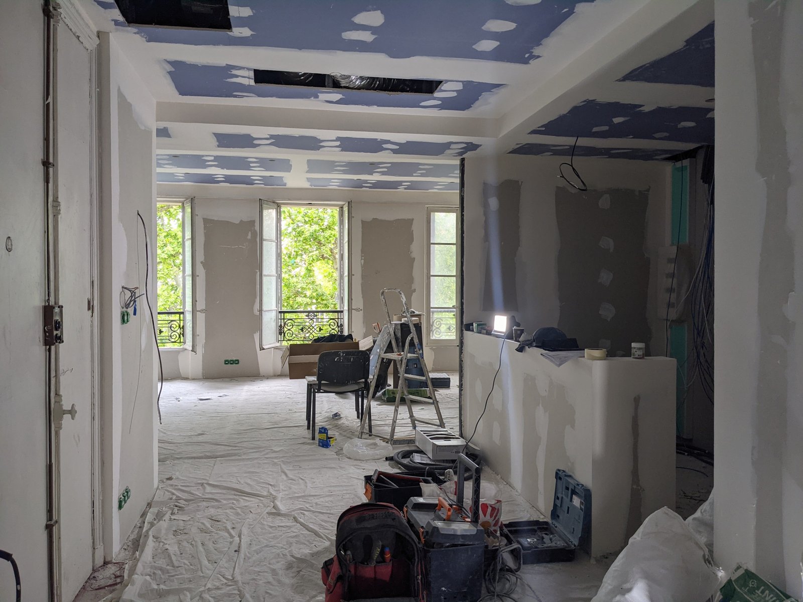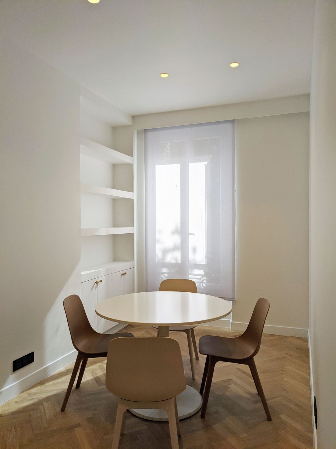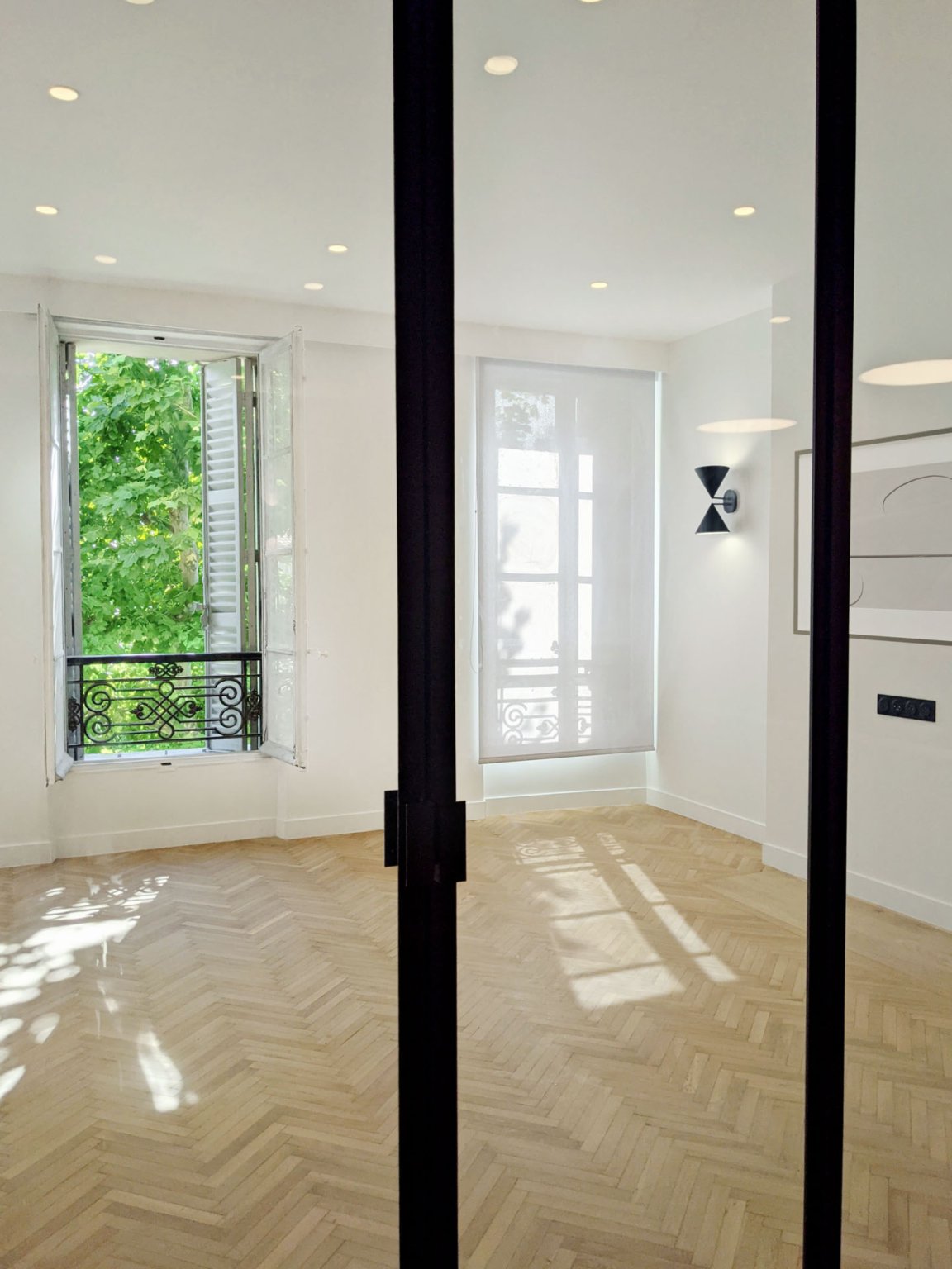 Cet appartement traditionnel marseillais niché dans un immeuble dit « trois fenêtres » de la place Félix Barret s’est offert une rénovation complète comprenant des travaux structurels importants. Aujourd’hui, il accueille un cabinet d’avocats confortable et élégant. Le cabinet a été conçu pour se transformer en logement puisqu’il dispose d’une cuisine, d’une salle de bain, d’un dressing et l’un des bureaux dissimule un grand lit escamotable dans sa bibliothèque. Le cœur du cabinet, peint dans une teinte profonde et intense, confère une ambiance de caractère qui se propage dans toutes les pièces baignées de lumière naturelle.