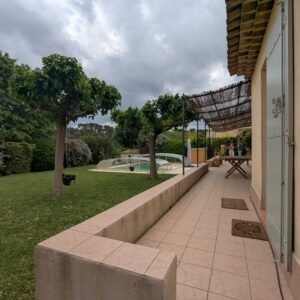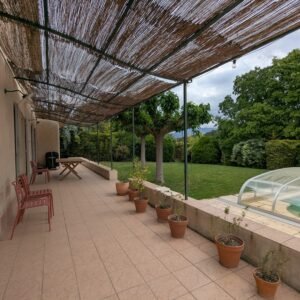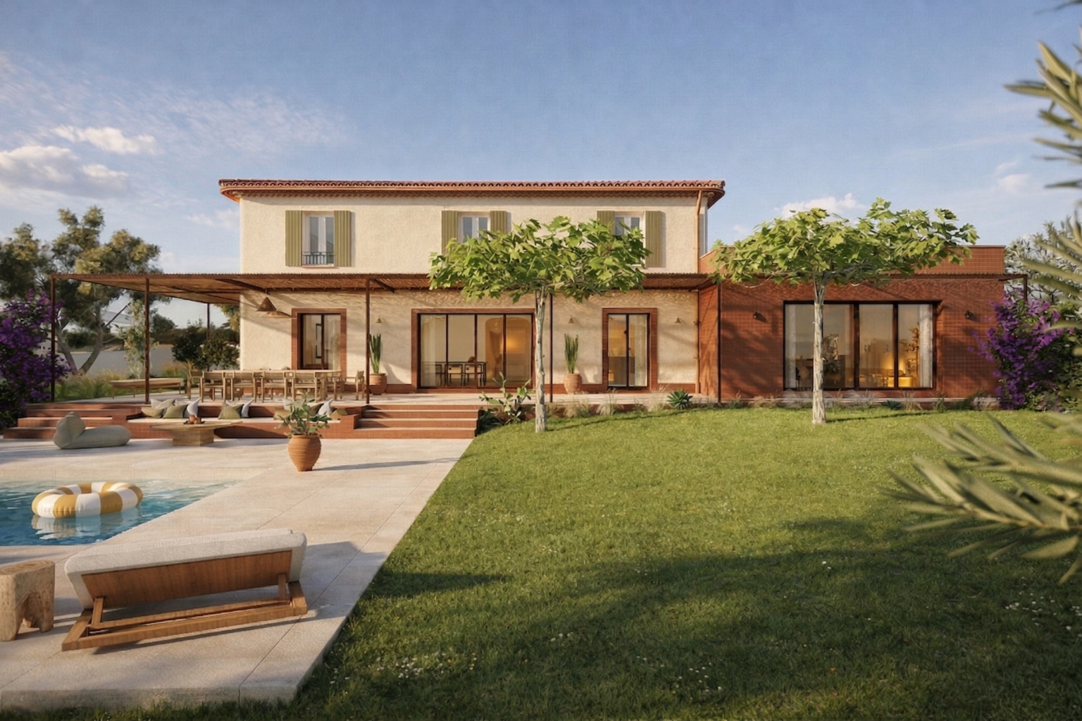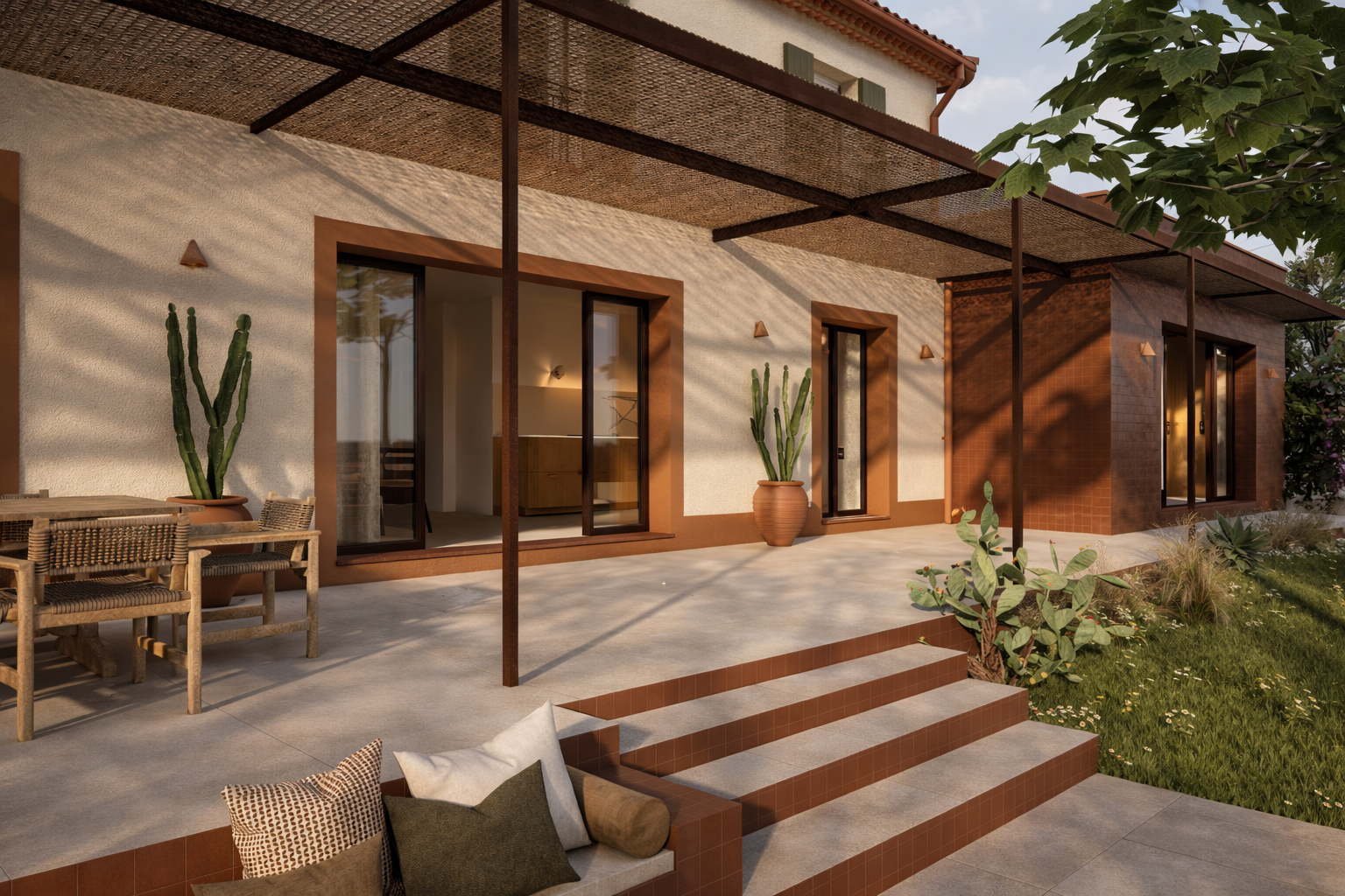 Implantée sur les hauteurs d’Aix-en-Provence, cette maison fait l’objet d’une rénovation et d’une extension visant à requalifier ses usages et à renforcer son lien au paysage. Le projet s’appuie sur une relecture des volumes existants afin d’ouvrir largement les espaces de vie vers le jardin et le grand paysage, jusqu’à cadrer les vues vers la Sainte-Victoire toute proche. Le volume secondaire existant est démoli au profit d’une extension de plain-pied accueillant un garage double et une suite parentale ouverte sur le jardin. Son écriture contemporaine bardée de terre cuite dialogue avec la maison existante. Les aménagements extérieurs accompagnent cette transformation. Le terrain est remodelé et les terrasses sont redessinées. La pergola joue un rôle bioclimatique, filtrant la lumière et améliorant le confort d’été. La piscine est simplifiée pour retrouver une géométrie claire.